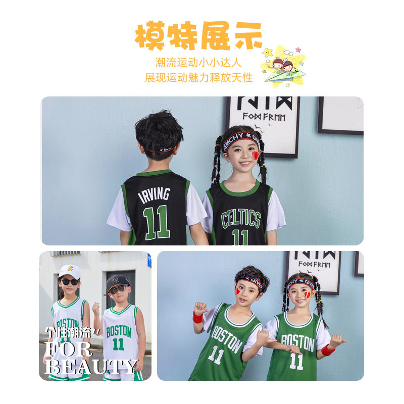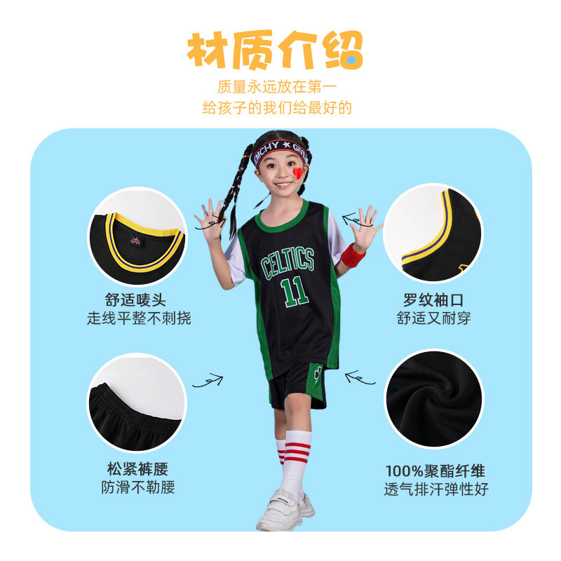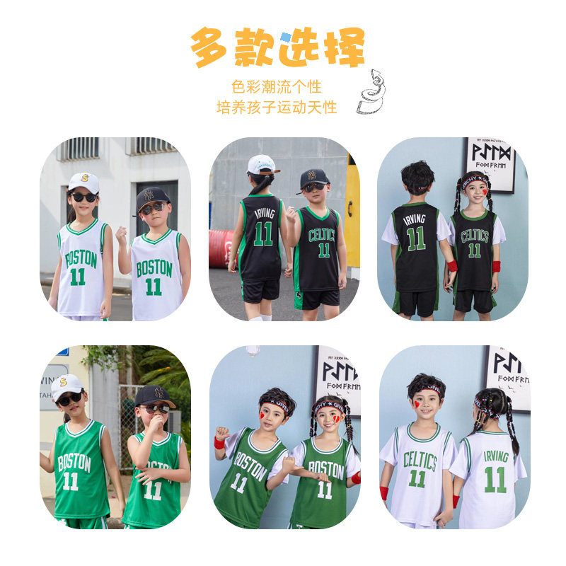 儿童篮球服套装速干男童短袖训练夏欧文女生凯尔特人绿色球衣定制