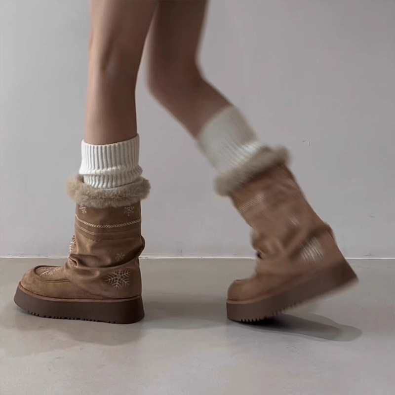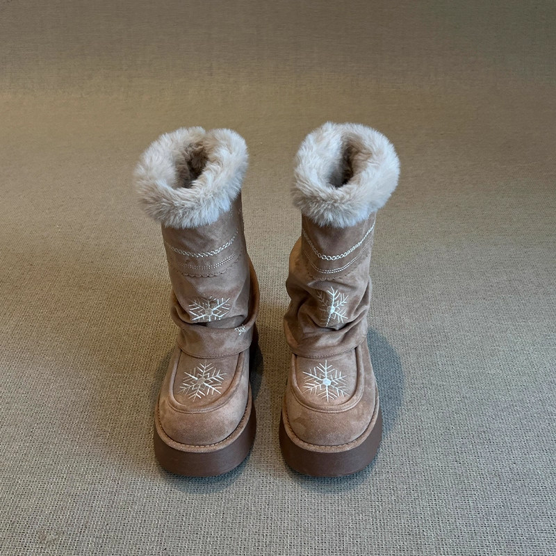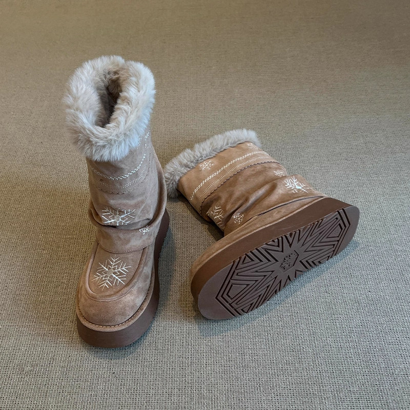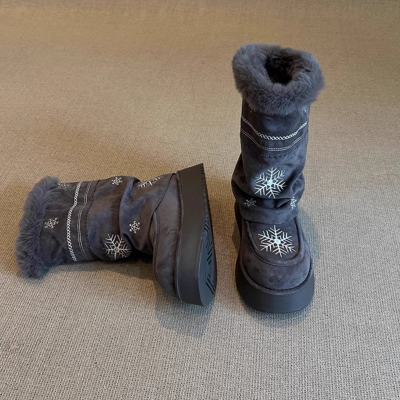 雪花刺绣厚底雪地靴女款2026冬季新款加绒保暖东北棉鞋中筒雪地棉