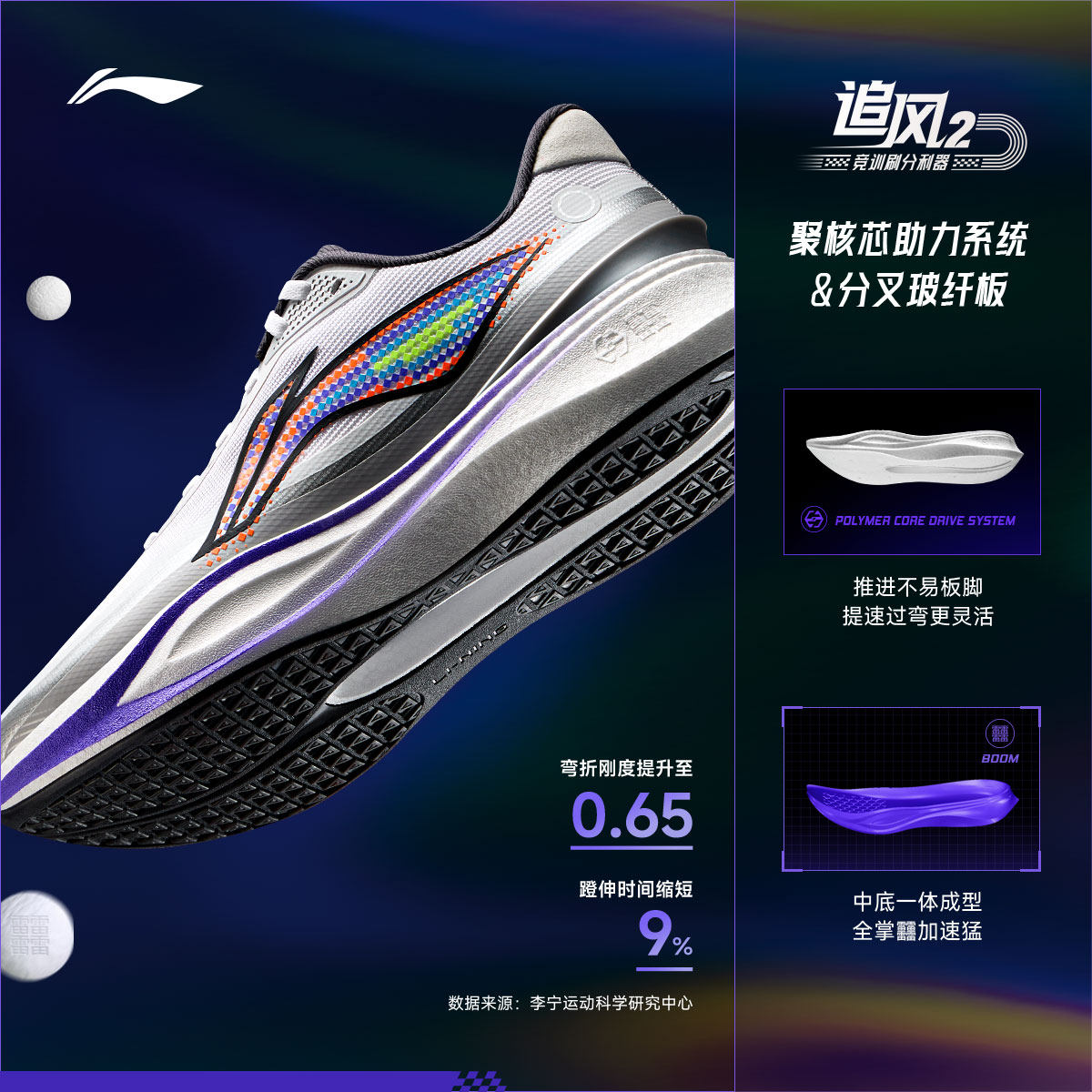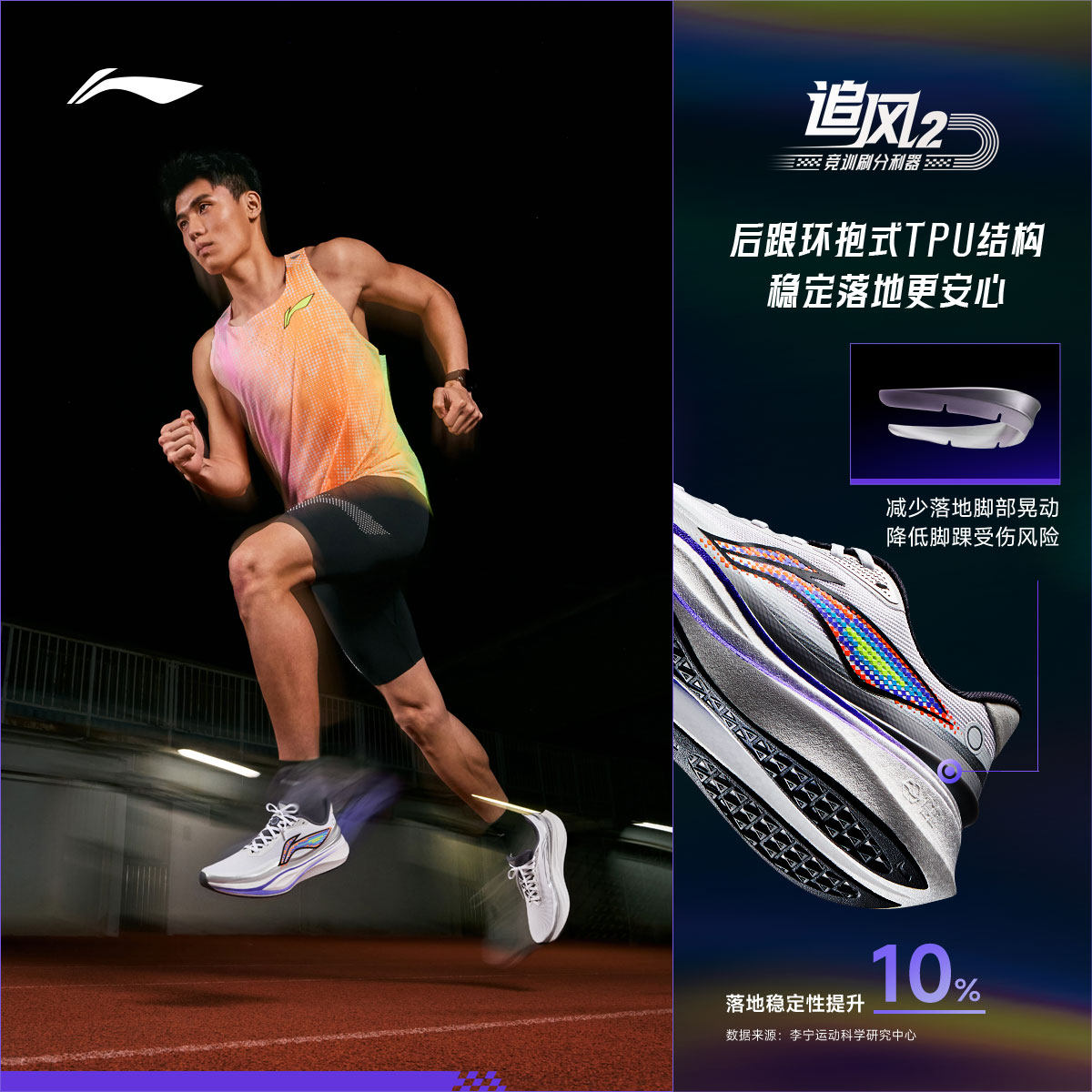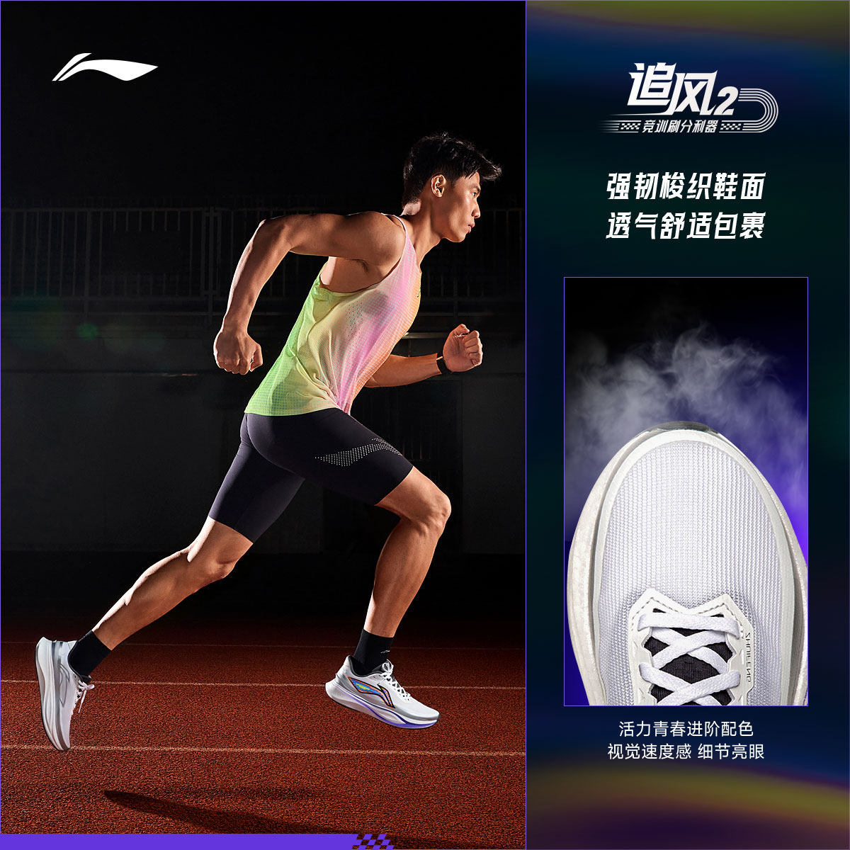 李宁追风2流光溢彩丨跑步鞋男款新款轻便透气中考体测专业运动鞋