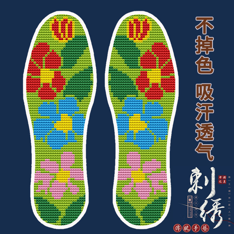 【买5送1】新款十字绣鞋垫半成品带针线自己绣棉针孔简单易绣刺绣