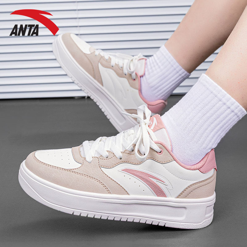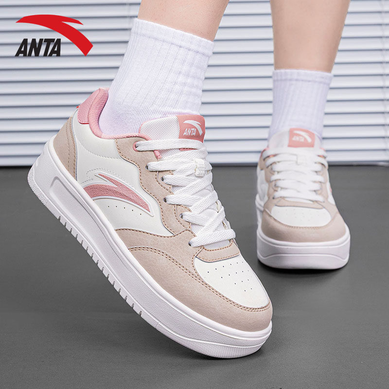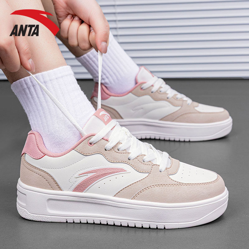 安踏轻松板鞋女鞋2026春季新款官方正品粉色厚底运动鞋女款休闲鞋