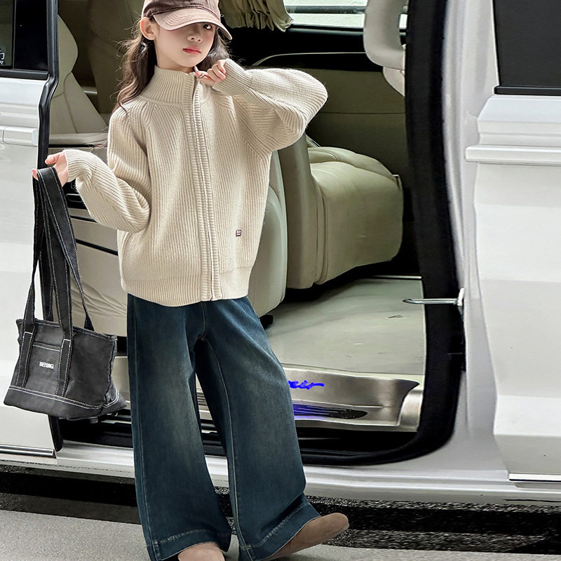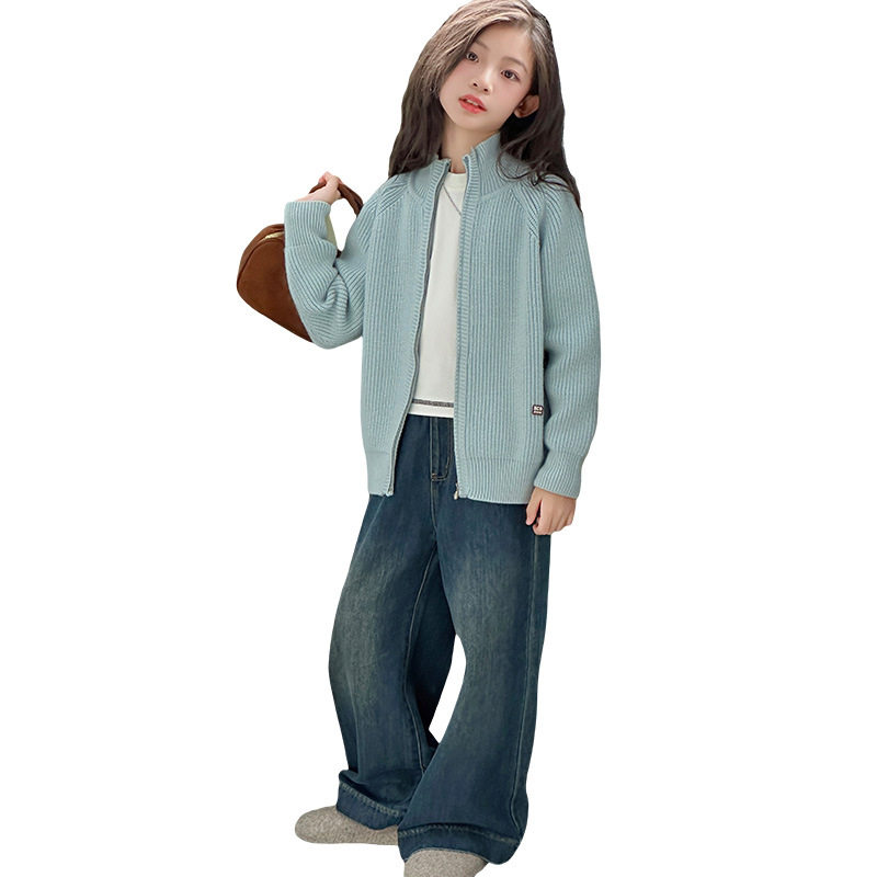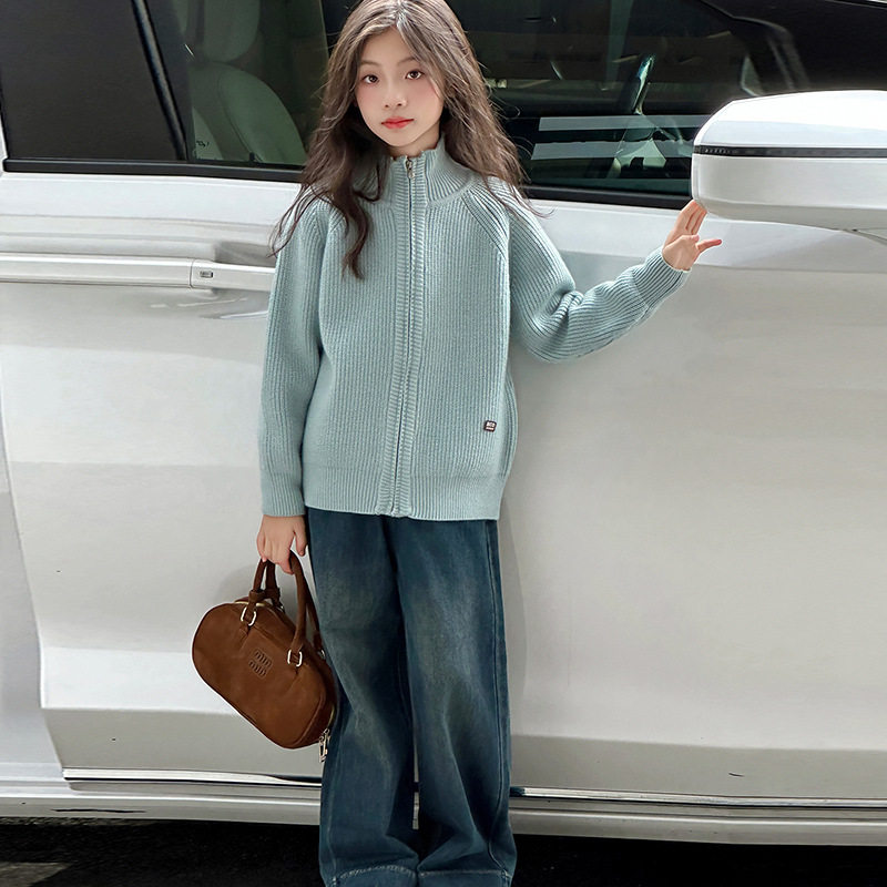 女童开襟毛衣外套2026春秋季新款大童拉链开衫好看初中生针织上衣