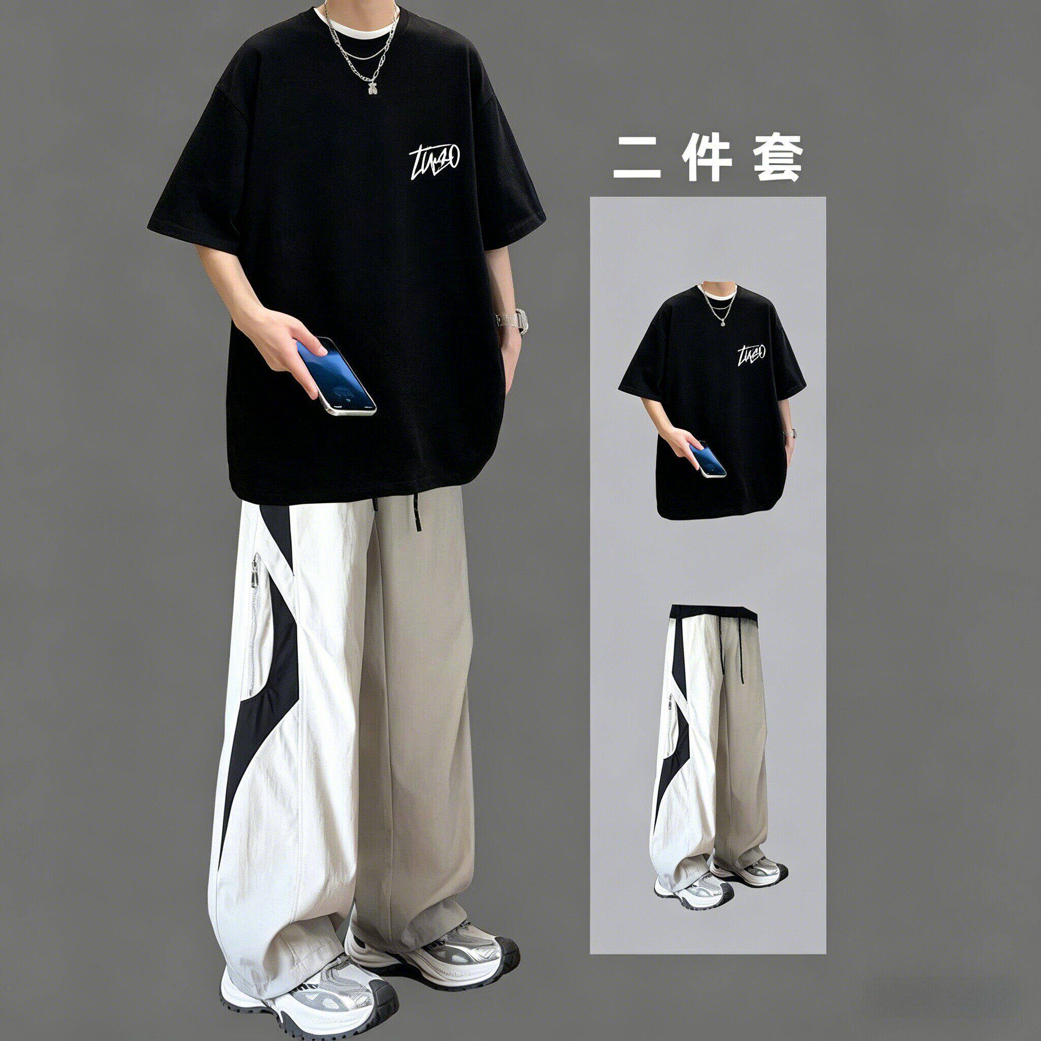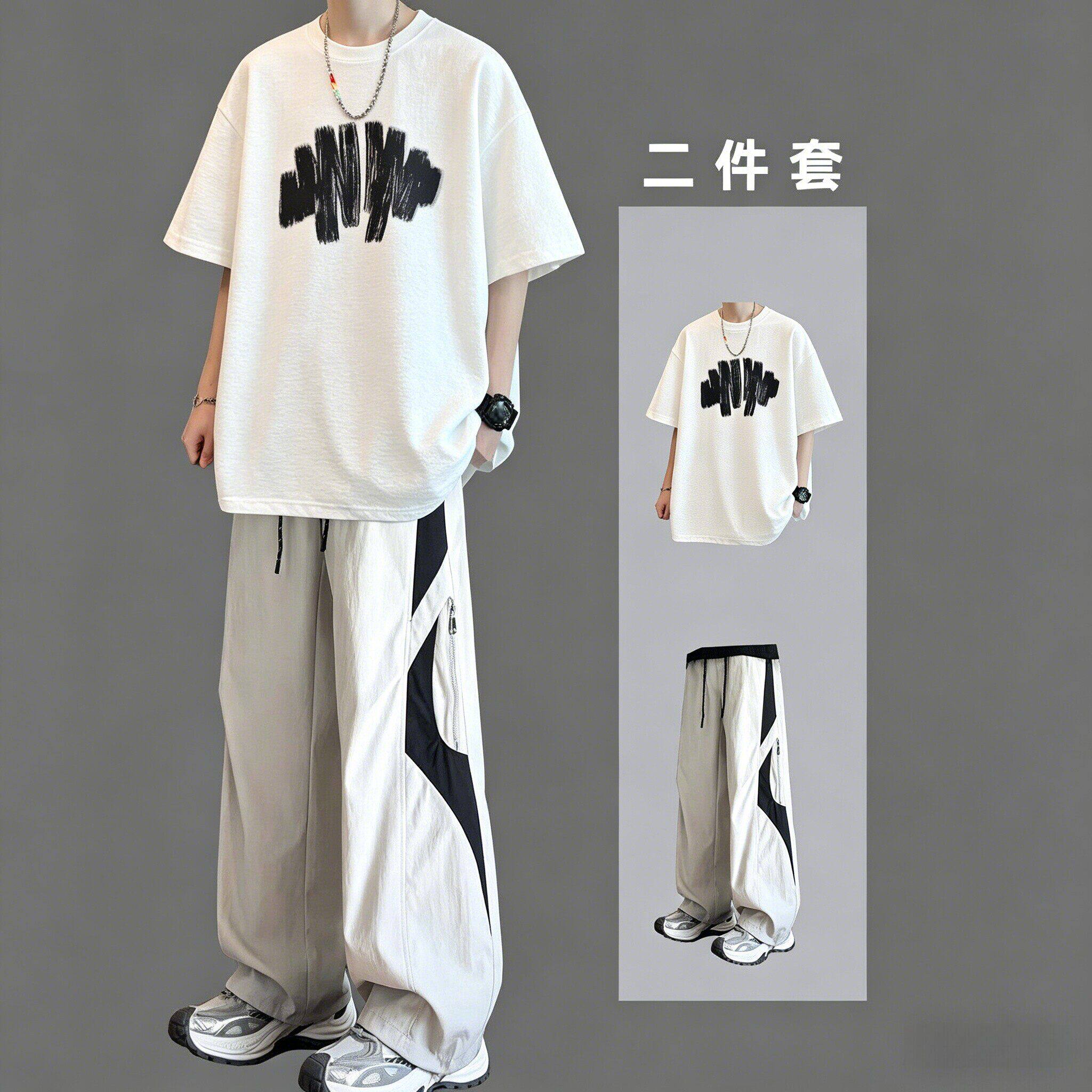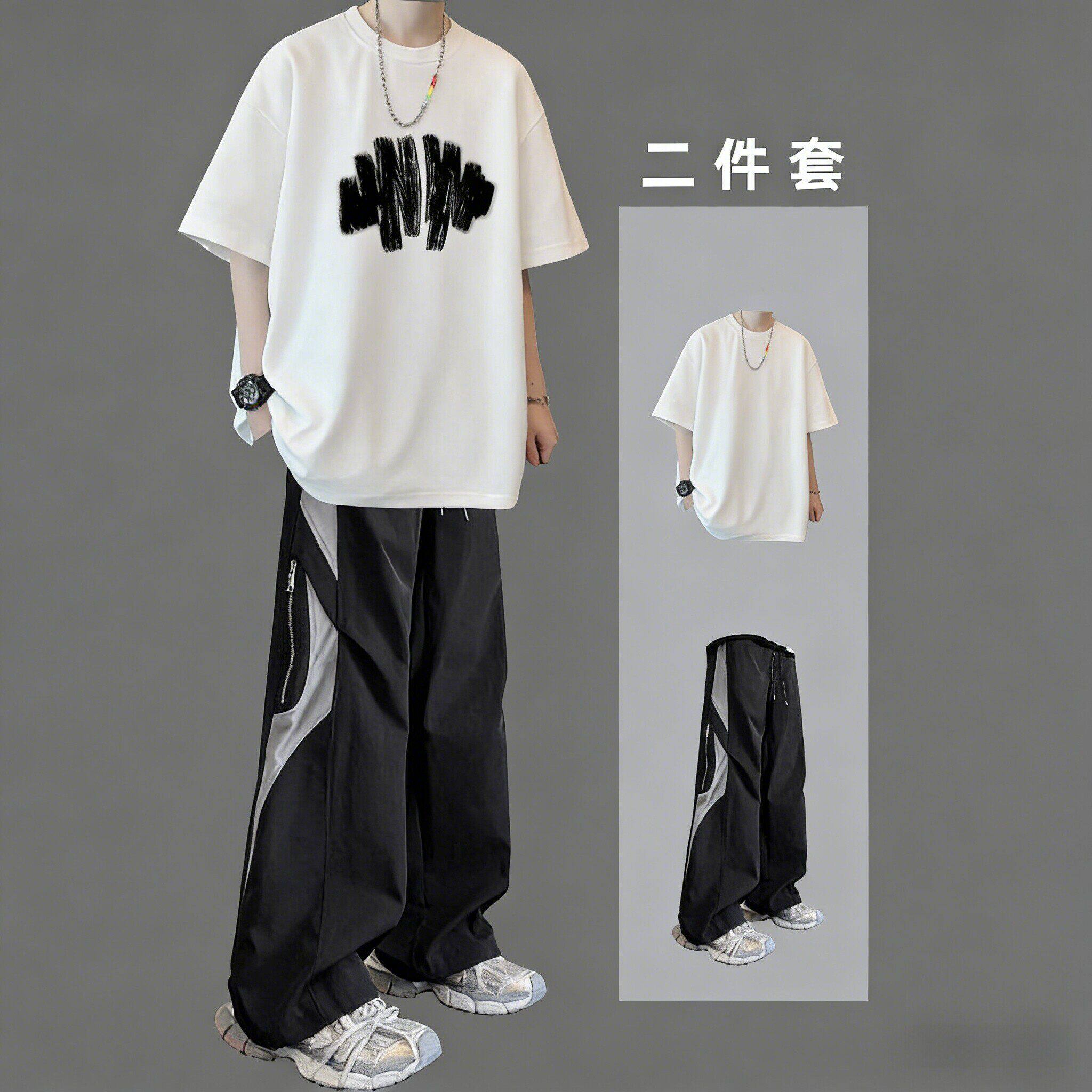 纯棉短袖t恤男生夏季百搭休闲运动服套装青少年男装帅气学生潮流
