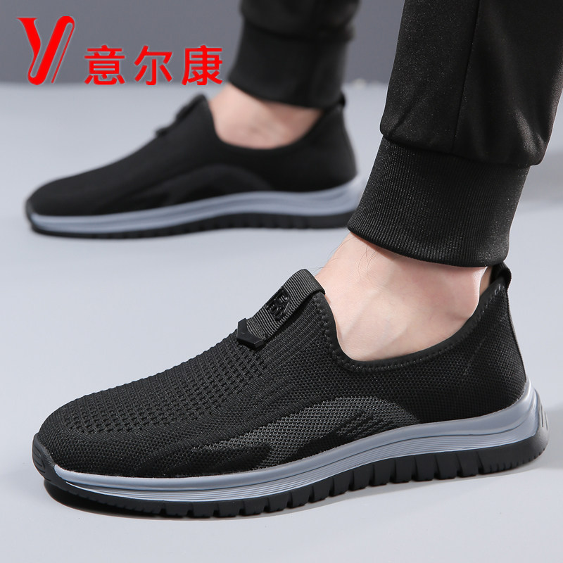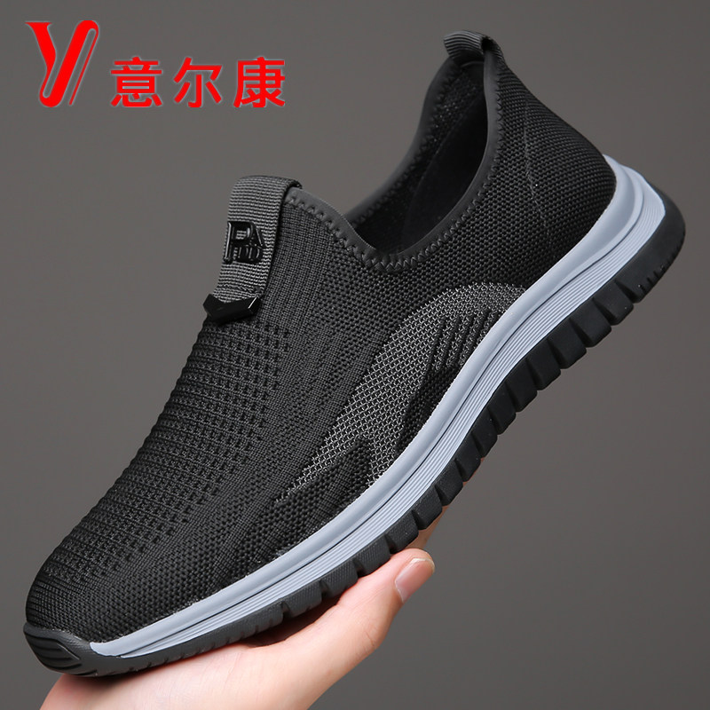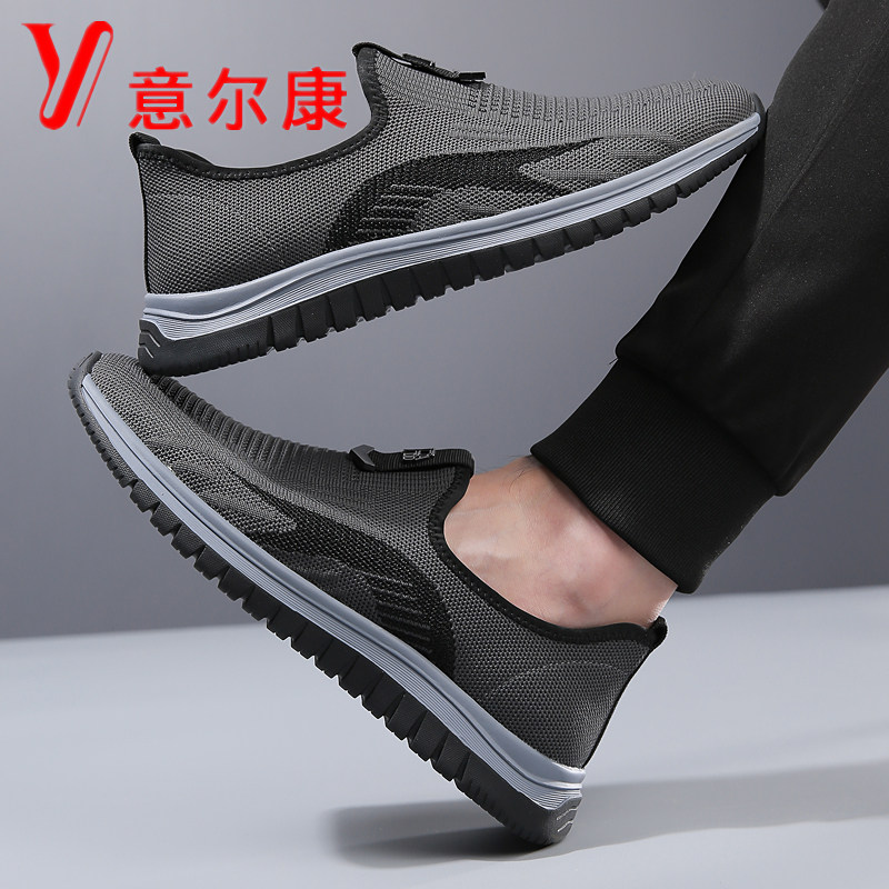 意尔康男士2025夏季新款透气运动鞋轻便软底飞织休闲网面爸爸鞋子