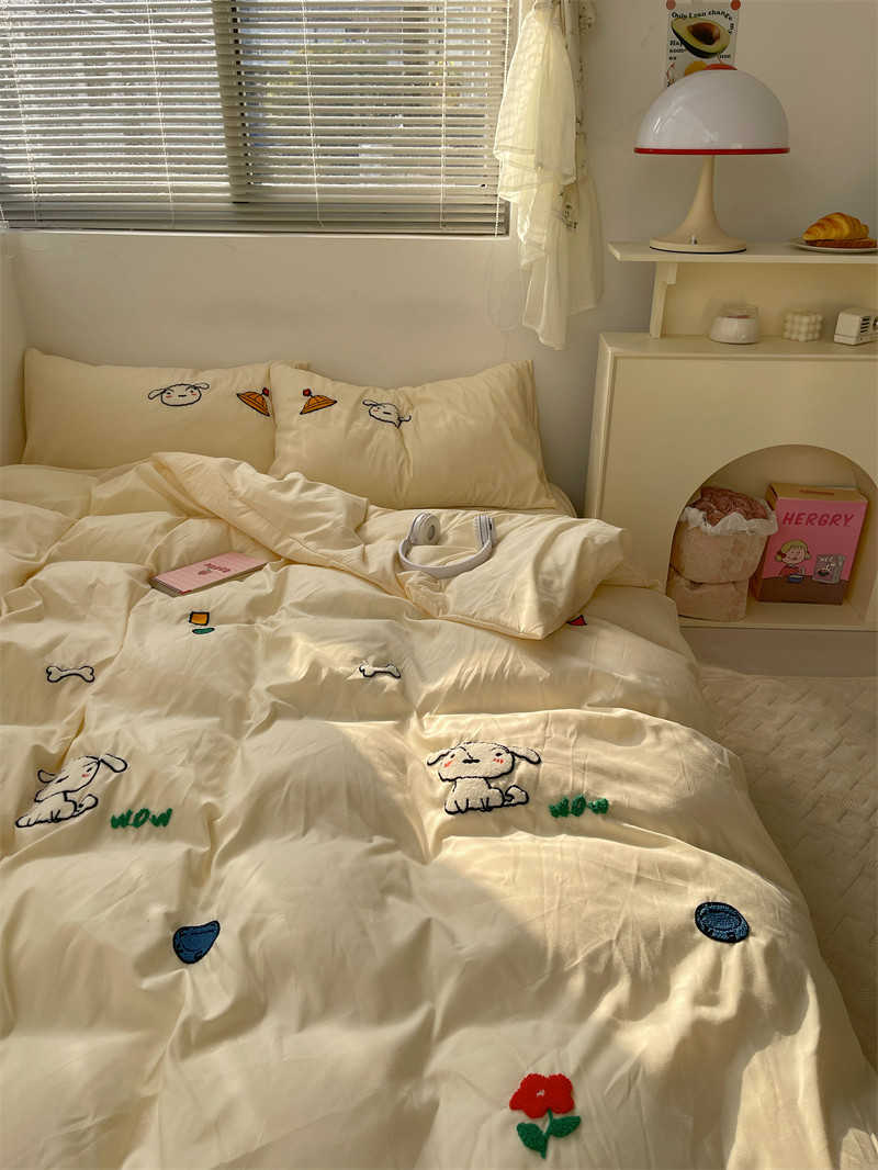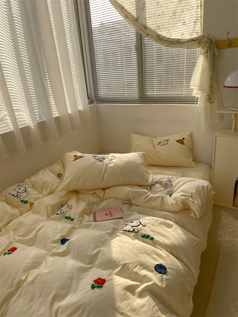 梨梦 站住!小白 ins少女春夏水洗棉四件套可爱床单被套床上用品