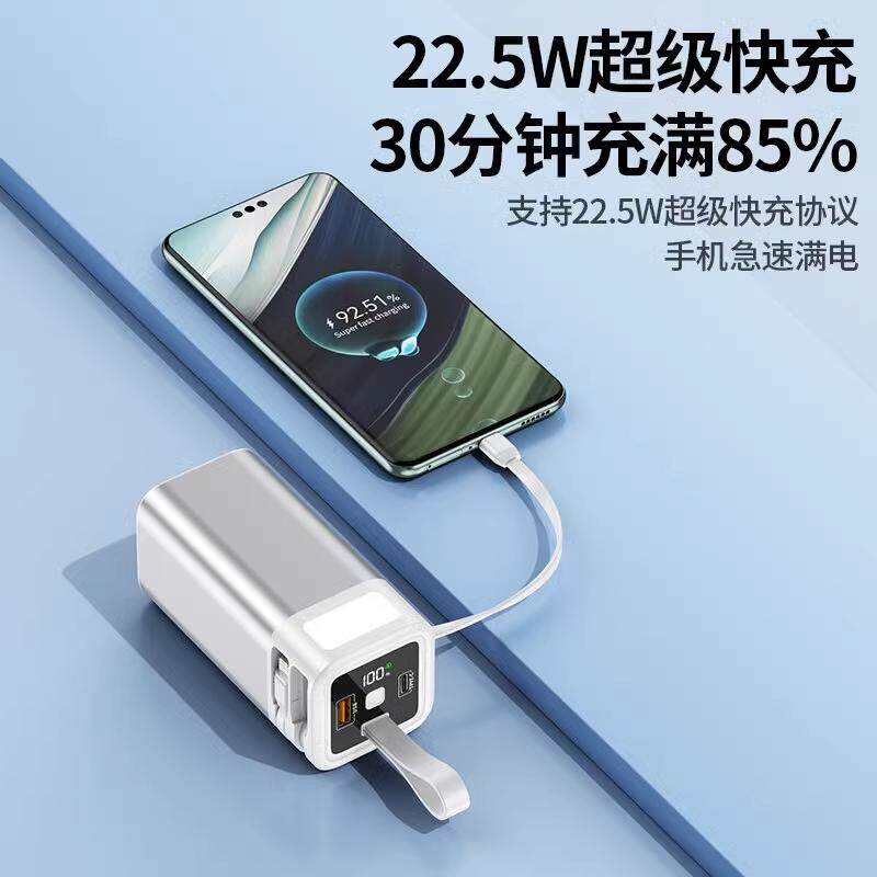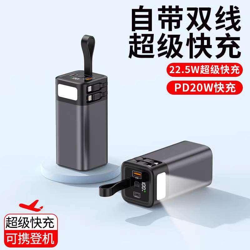 天语自带线充电宝强光LED大容量20000毫安超级快充摆摊露营耐用