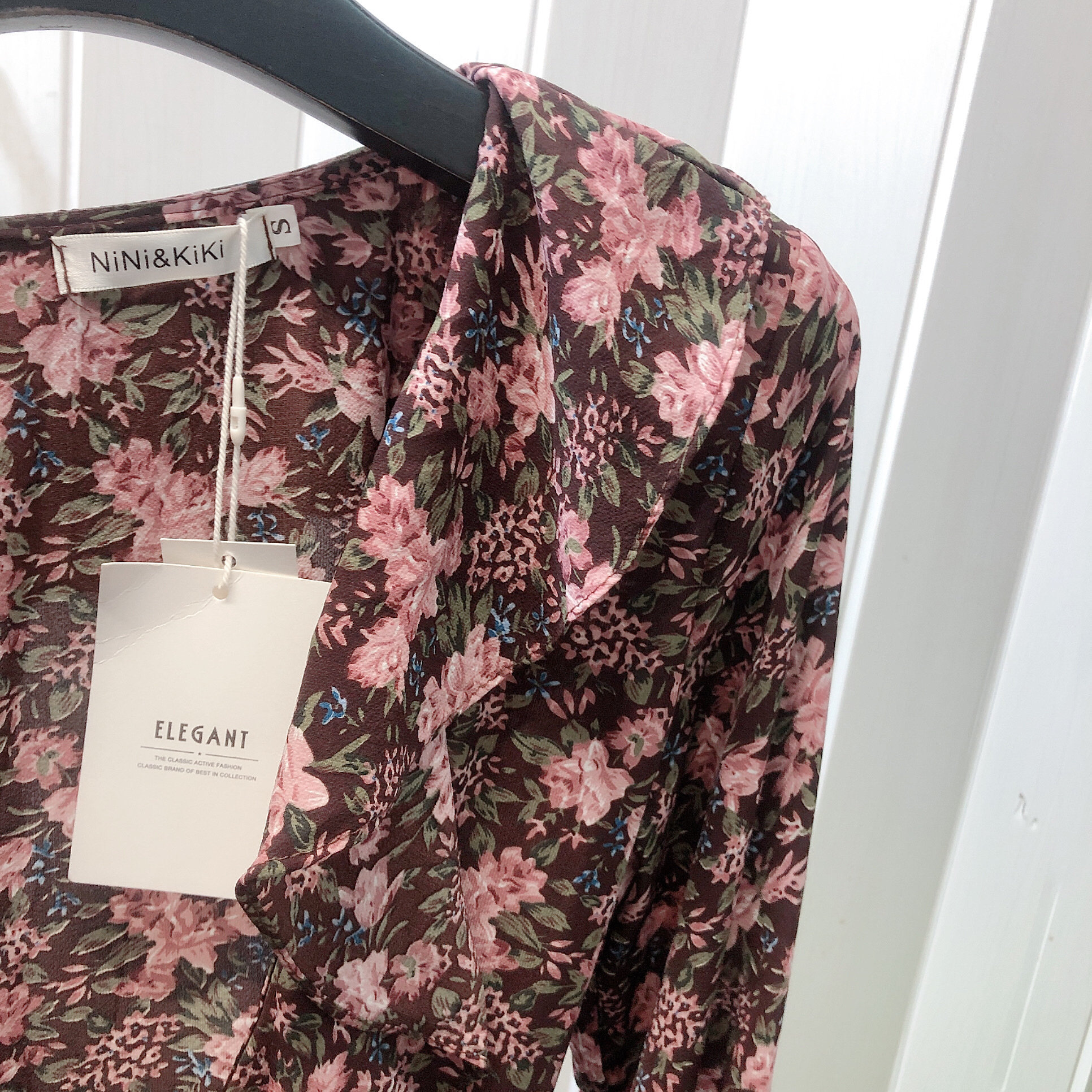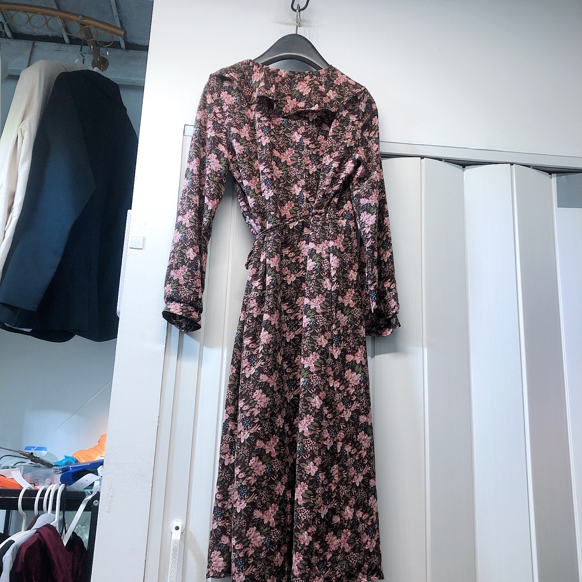 S码紫色碎花长袖连衣裙V领不退不换看好再拍