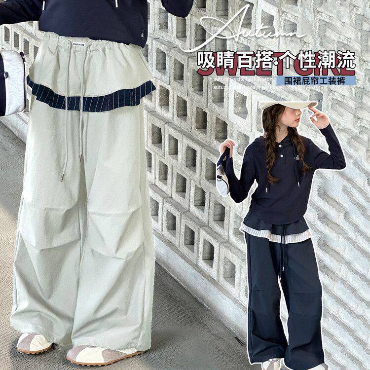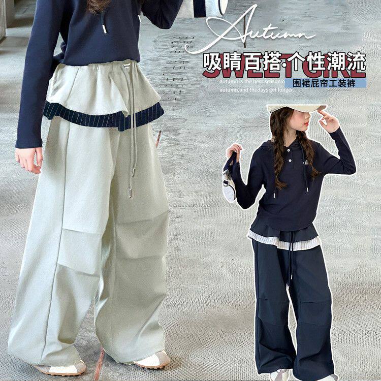女童裤子春装2026新款儿童洋气屁帘工装裤大童初中生休闲直筒裤潮