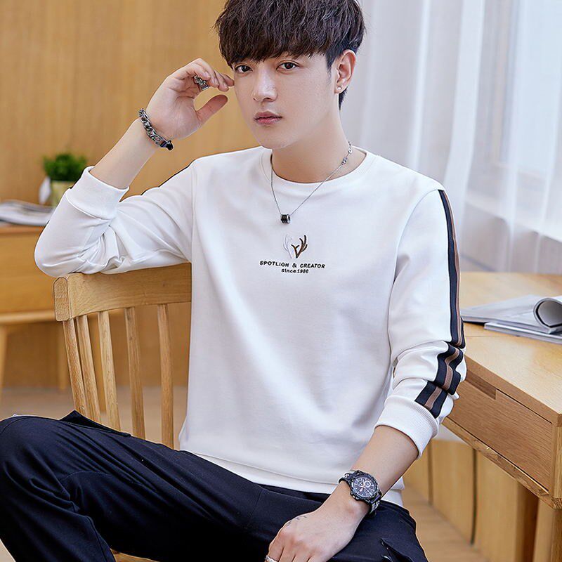 秋季青少年长袖卫衣男孩t恤潮流帅气纯棉薄款初中学生高中生春季
