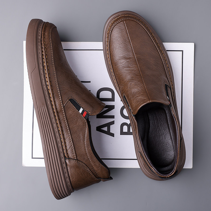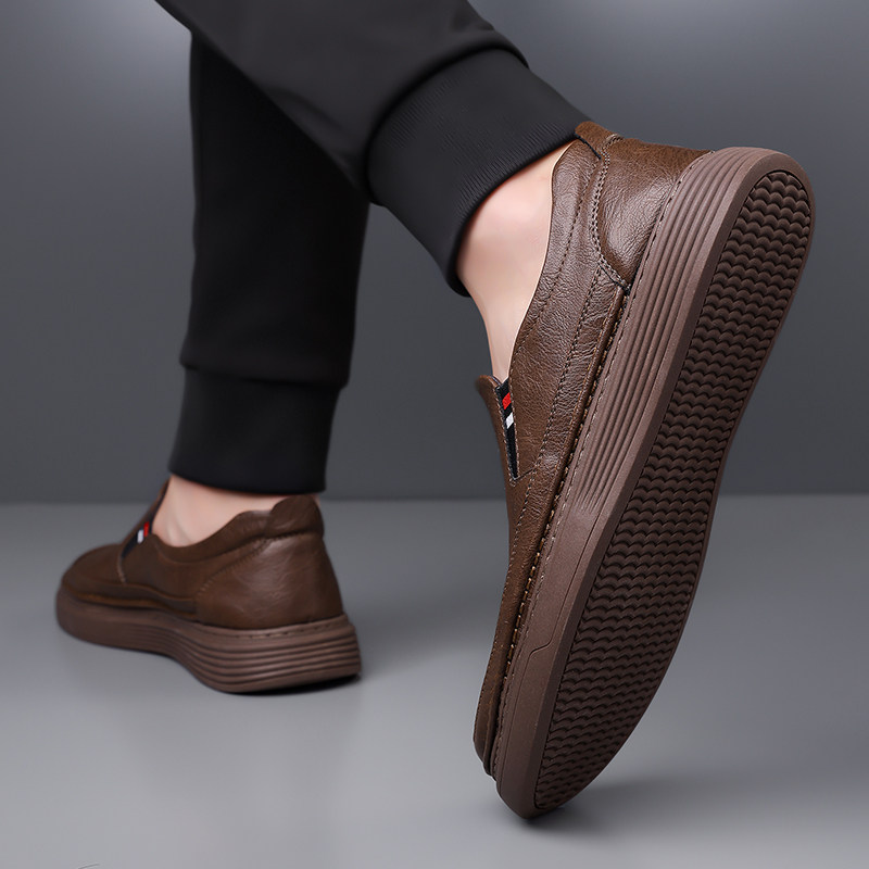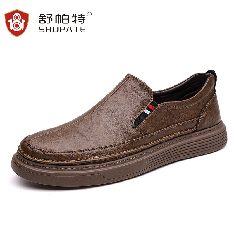 男鞋2026新款潮流春季商务男士爸爸休闲鞋透气真皮软底一脚蹬皮鞋