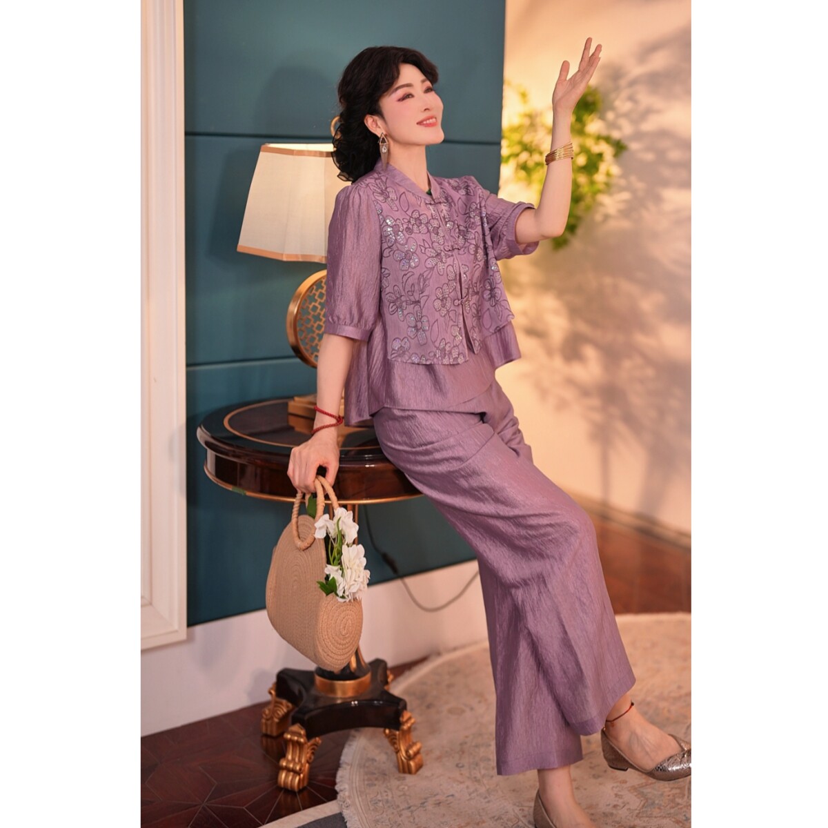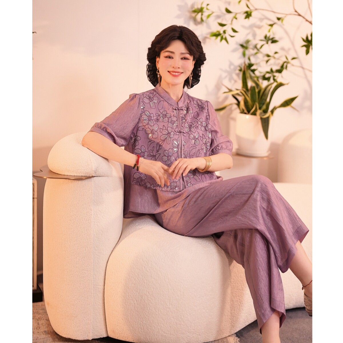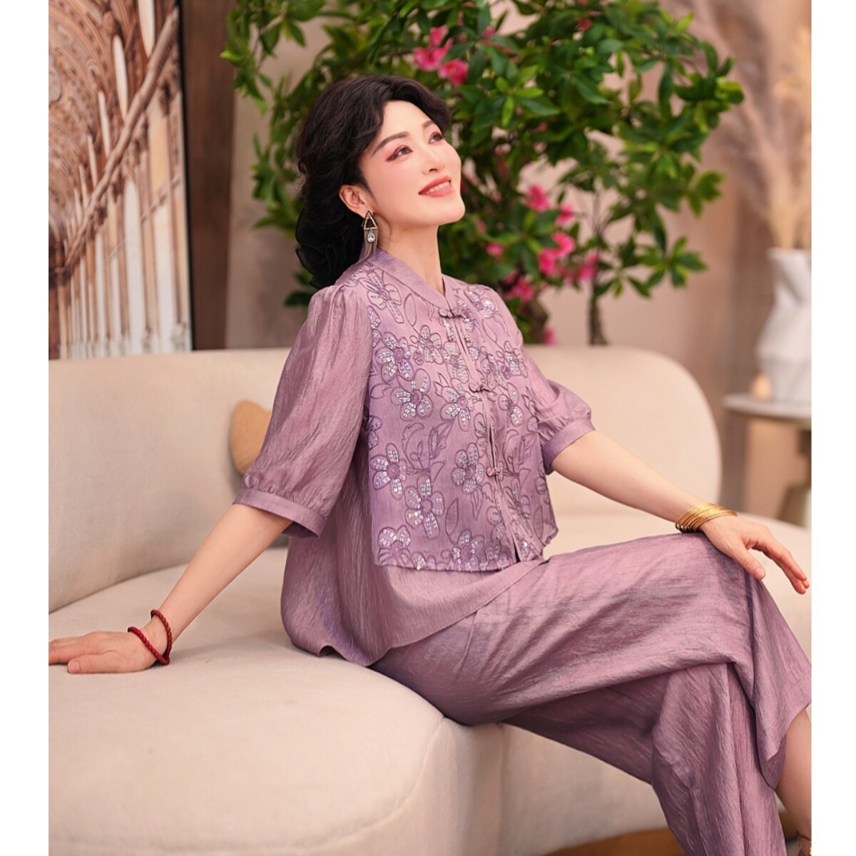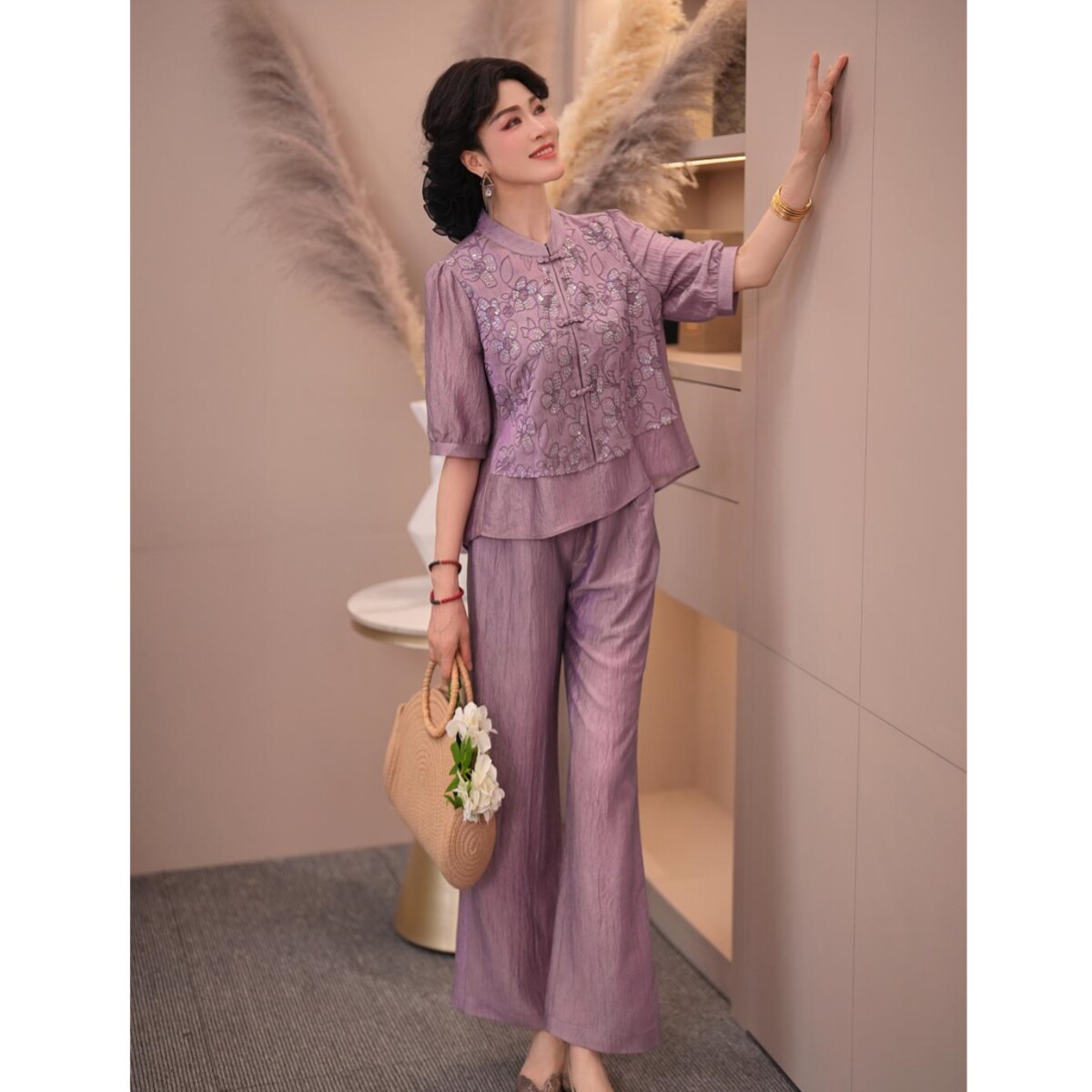 2026新款妈妈装夏季新国风套装洋气中年女装两件套裤子母亲节衣服