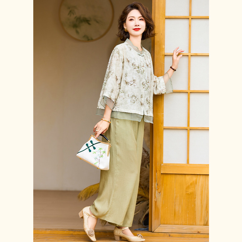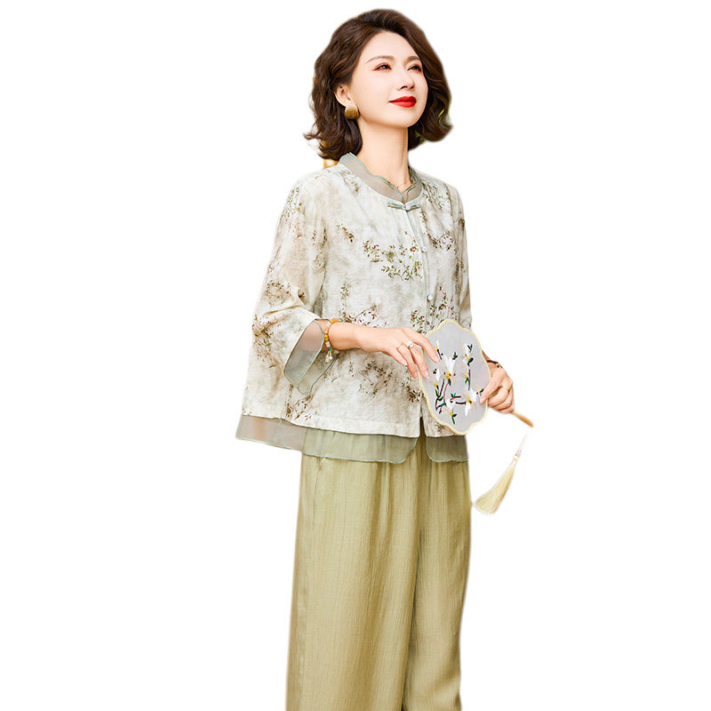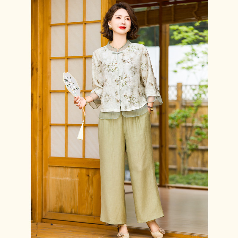 中年妈妈夏装衣服2026新款上衣裤子洋气质中老年女装高贵小衫套装