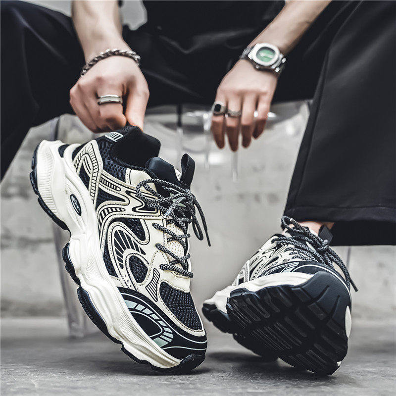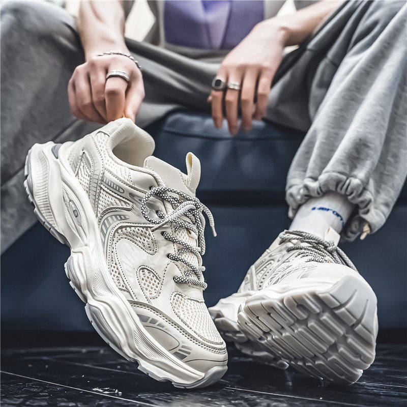 运动鞋男款夏季网面透气青少年休闲跑步内增高港风高级感老爹潮鞋