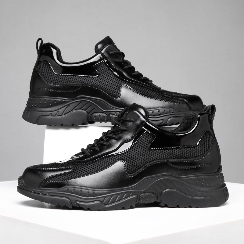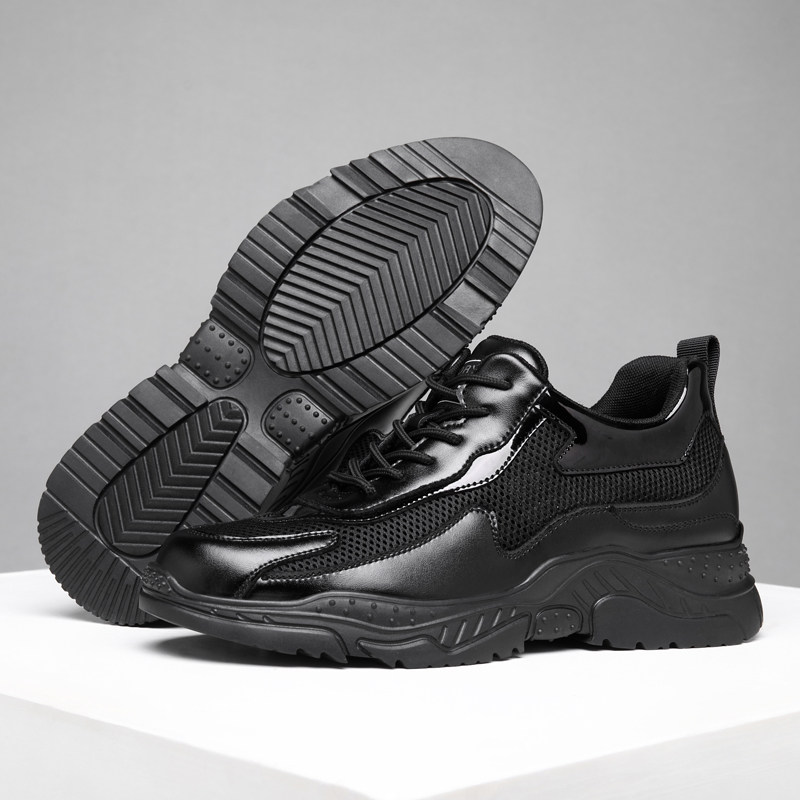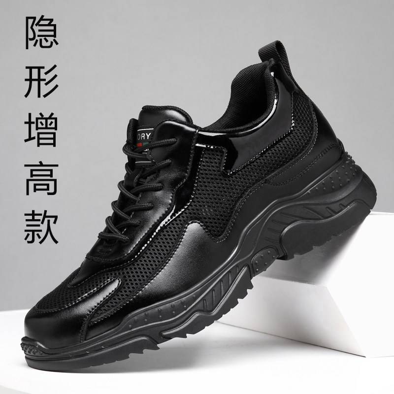 夏季运动鞋男款真皮透气防臭内增高厚底牛皮网纱休闲网面透气皮鞋