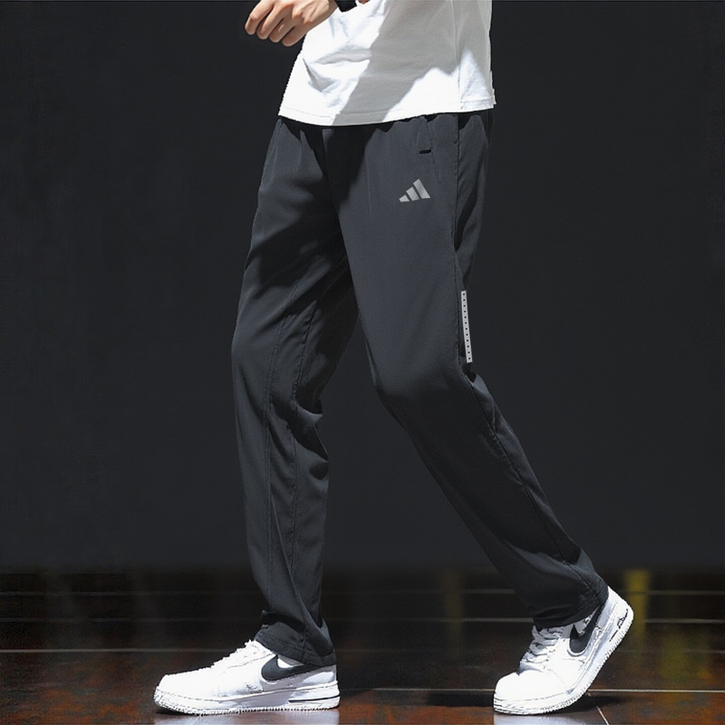 阿迪达斯薄款裤子男夏季新款透气速干梭织凉感运动裤黑色直筒裤男