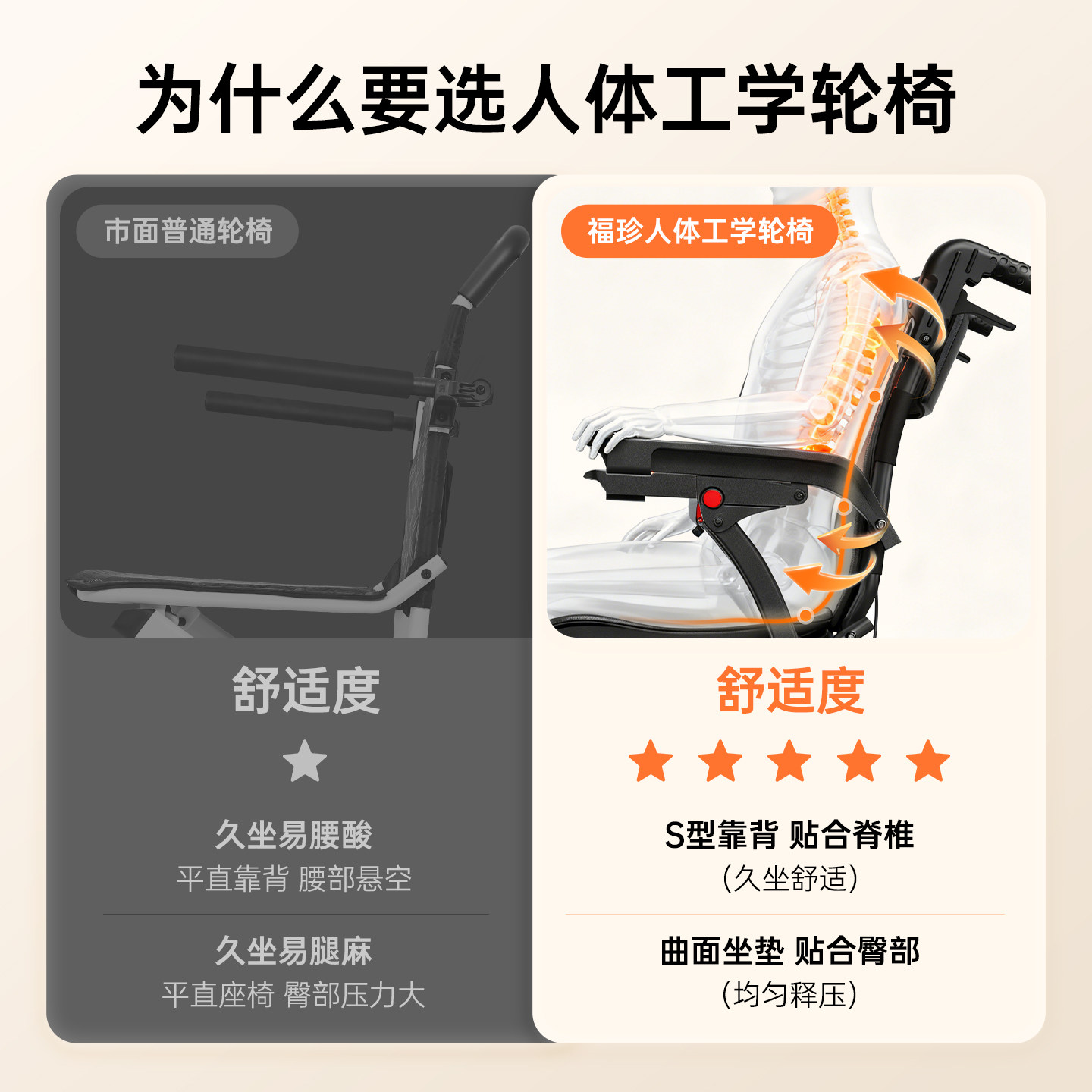福珍人体工学轮椅老人专用国家补贴代步车折叠轻便超轻便携式旅行