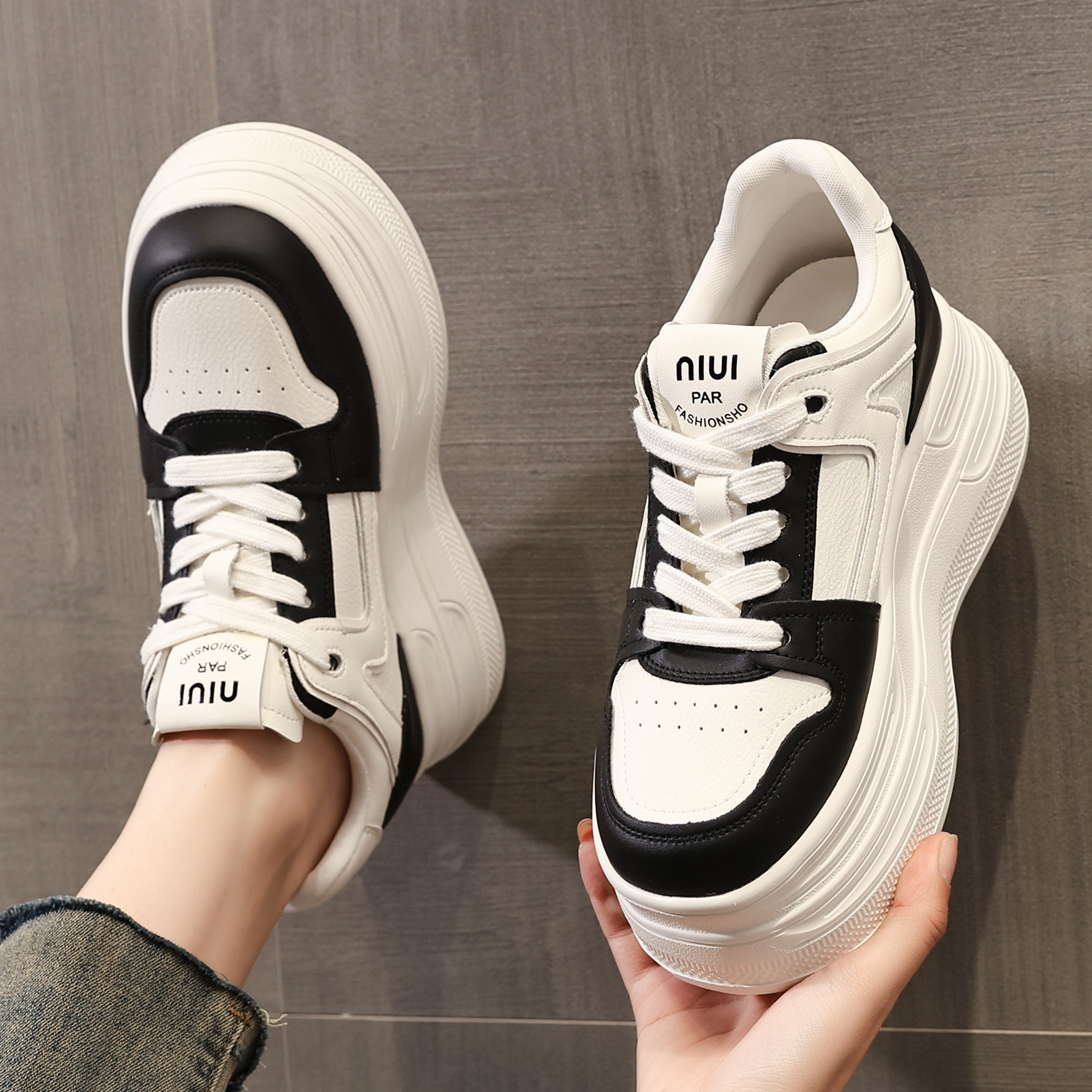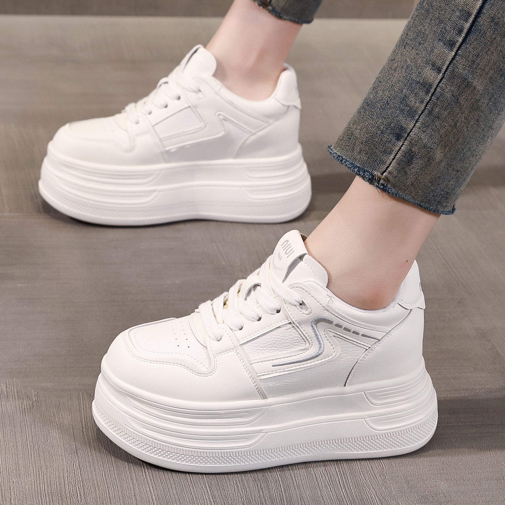ZFCQ香港厚底内增高小白鞋女款真皮2026秋新款显脚小8cm休闲单鞋