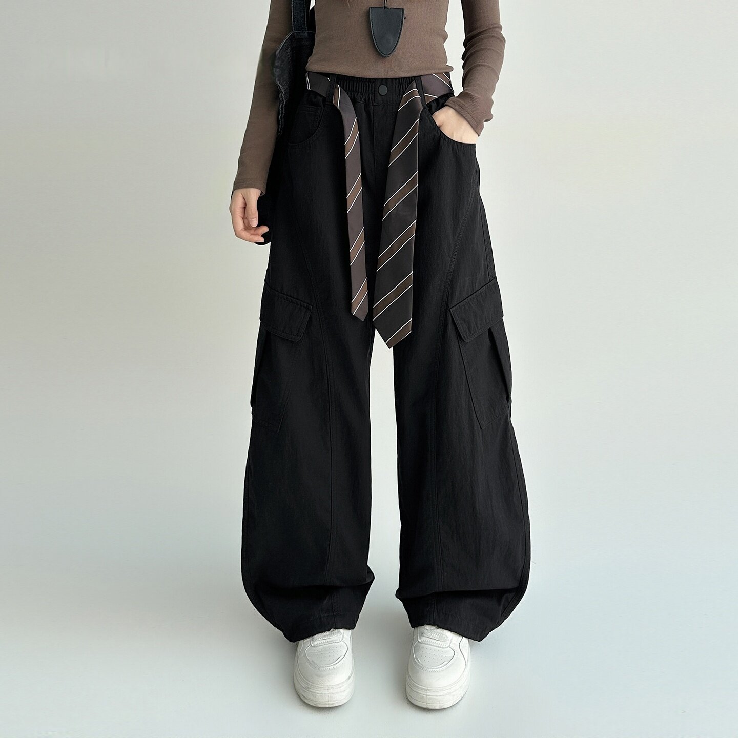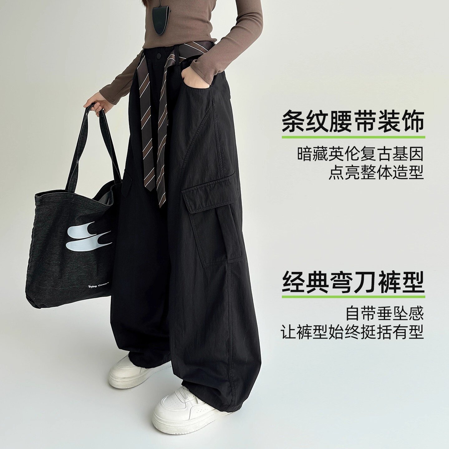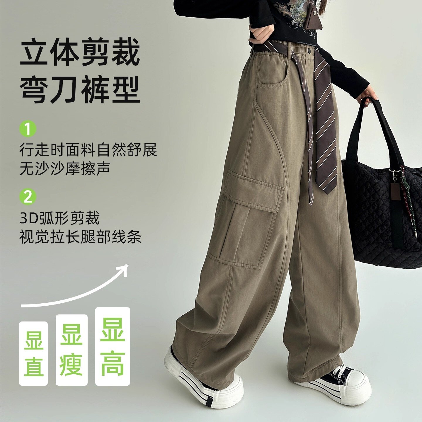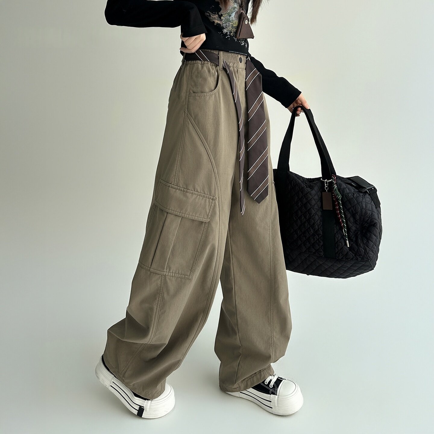 女大童工装裤加绒秋冬款2025新款裤子初中生女孩青少年阔腿休闲裤