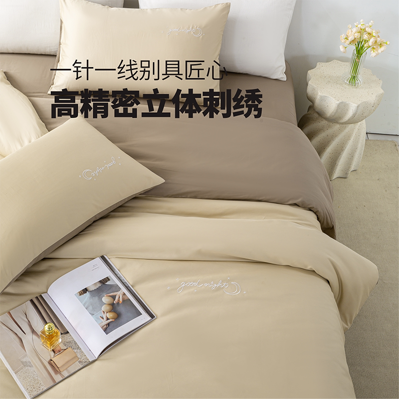 【长绒棉】晚安家纺2026新款纯棉春秋被套高级纯色四件套床上用品