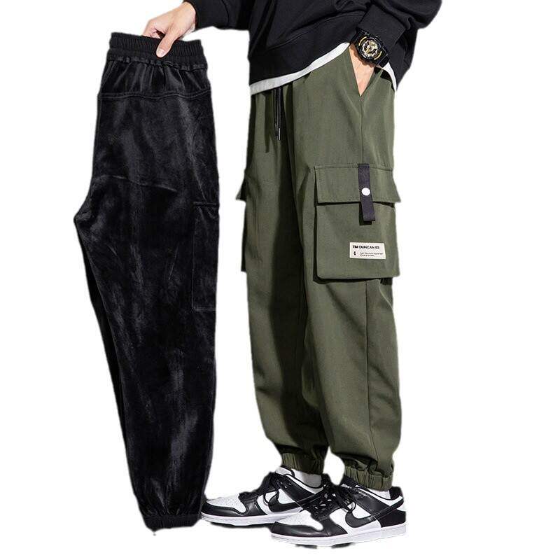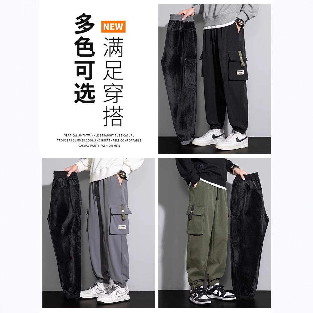 新款美式工装裤男士秋冬加绒宽松大码青少年加肥加大休闲裤子中腰