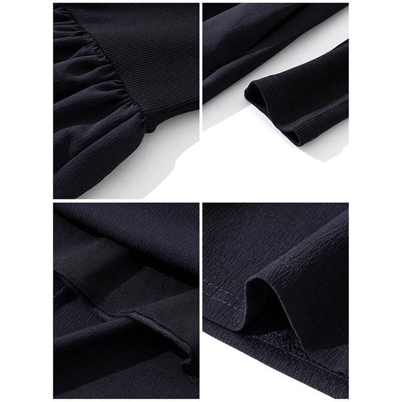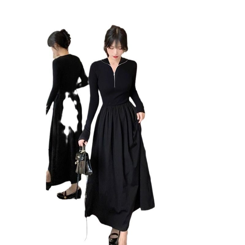 春季黑色长袖连衣裙女小个子长裙高级感2025新款女装套装春秋裙子
