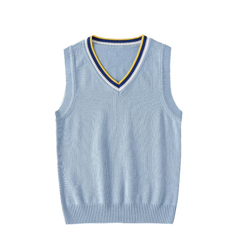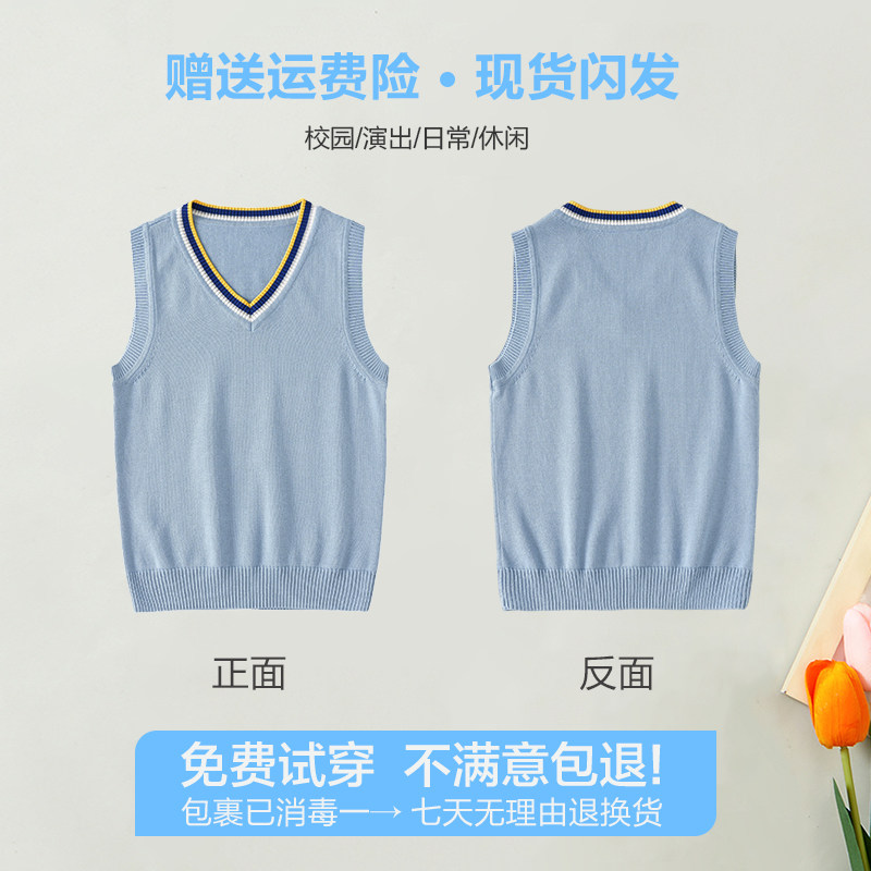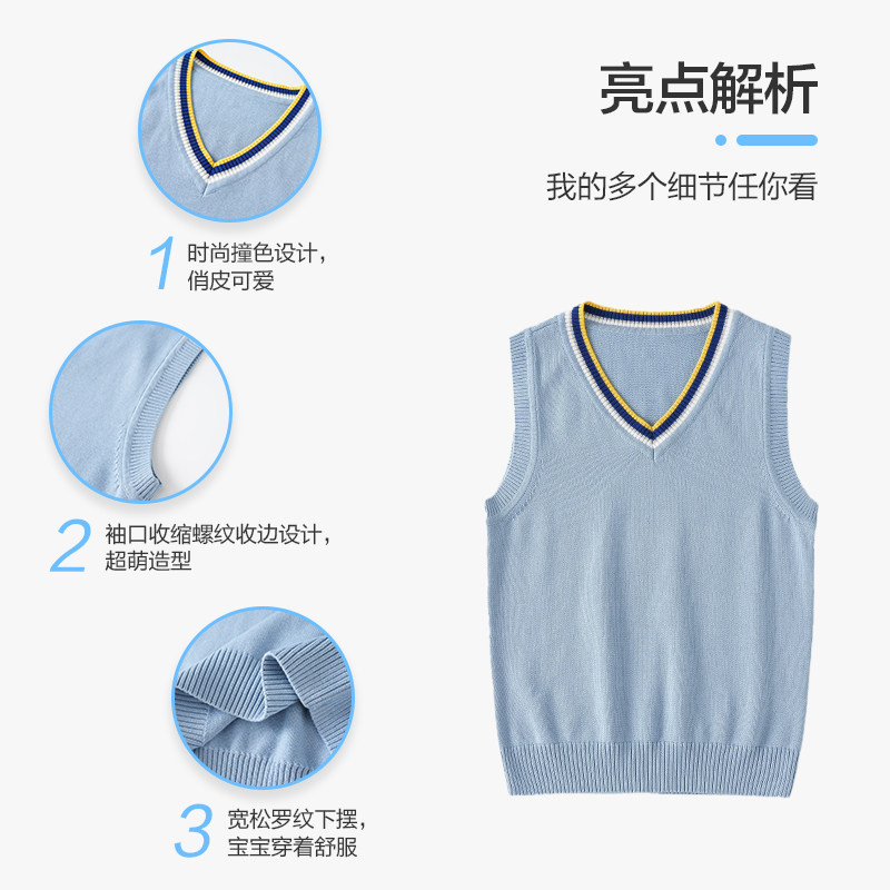 小学生校服马甲毛衣春秋毛线衣男女童全棉坎肩儿童针织背心浅蓝色