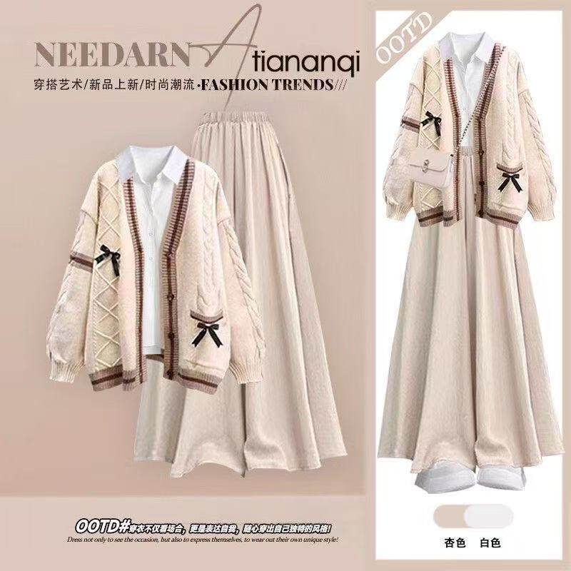 高中学生毛衣外套衬衫三件套装女秋冬季2025新款初中生一整套穿搭