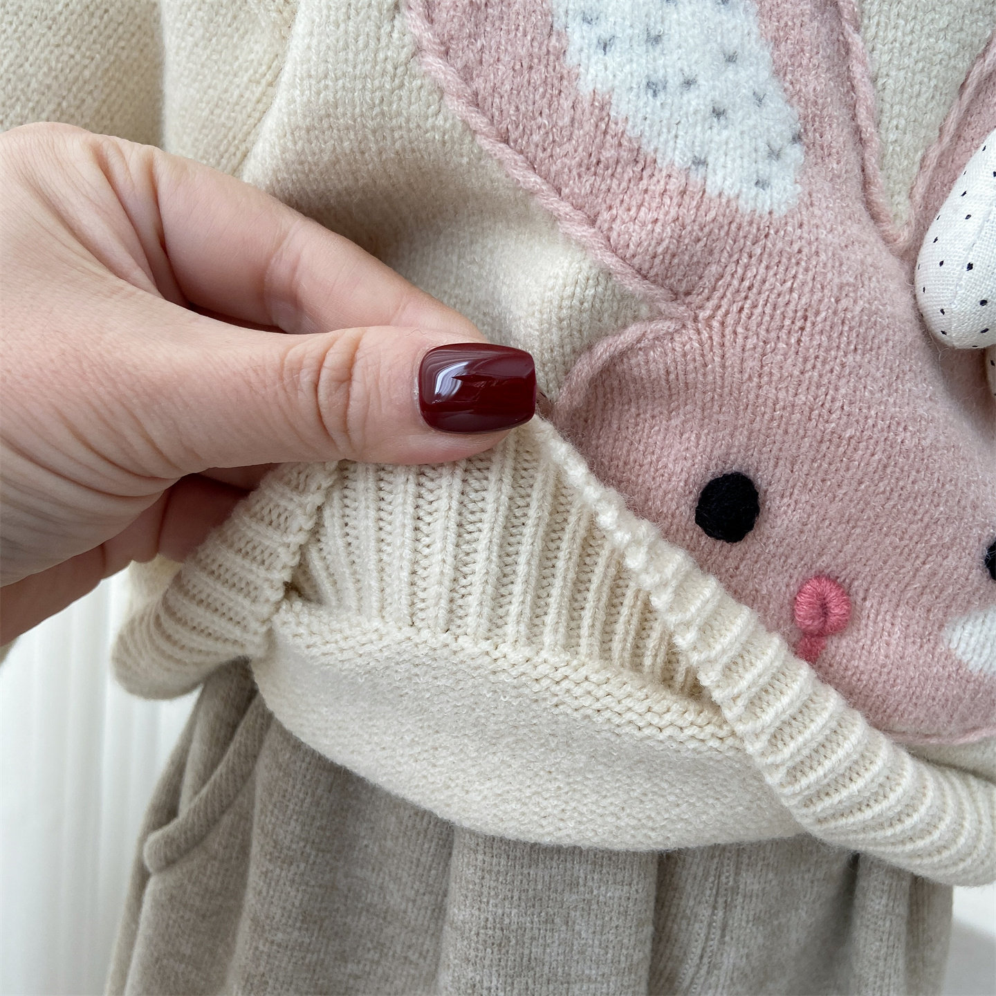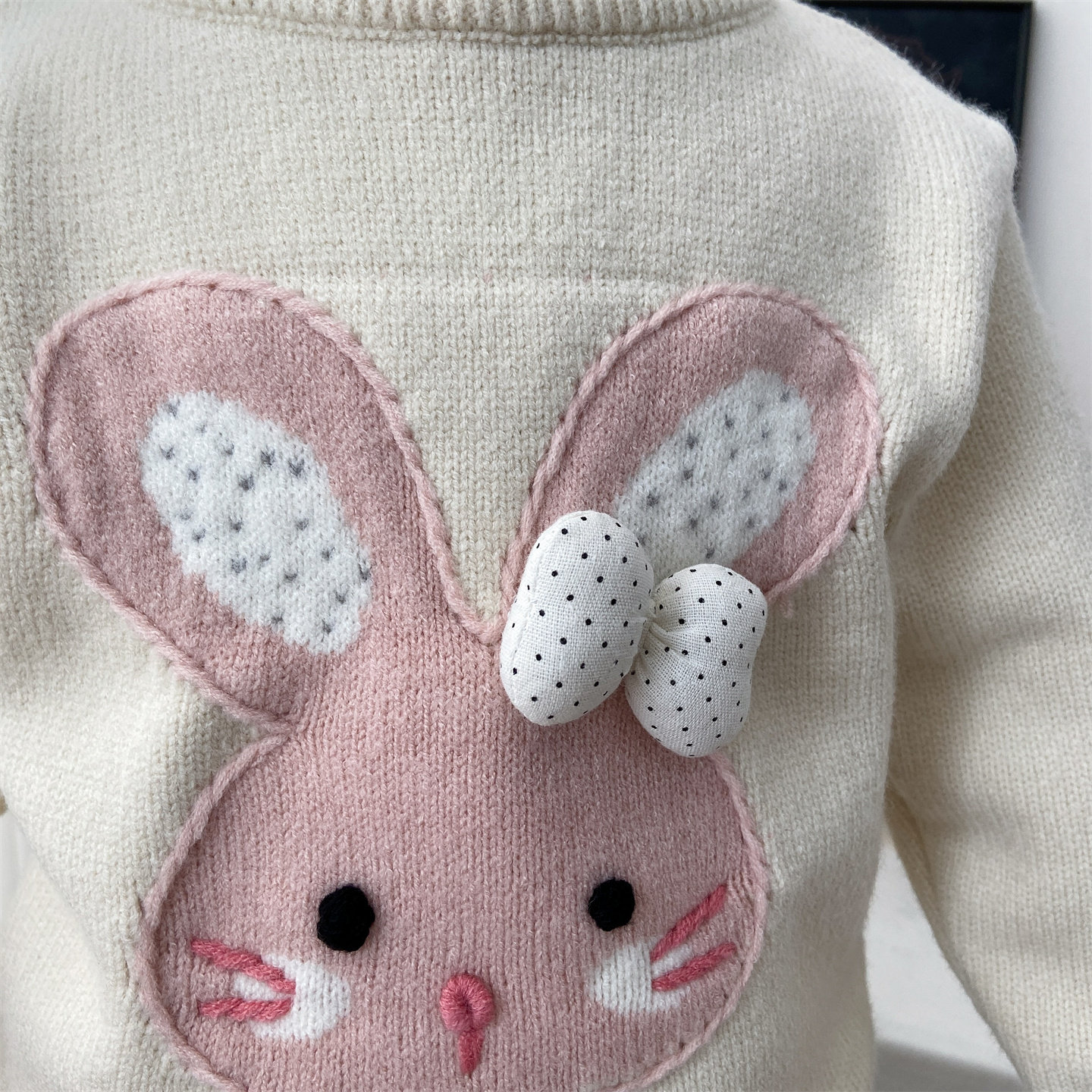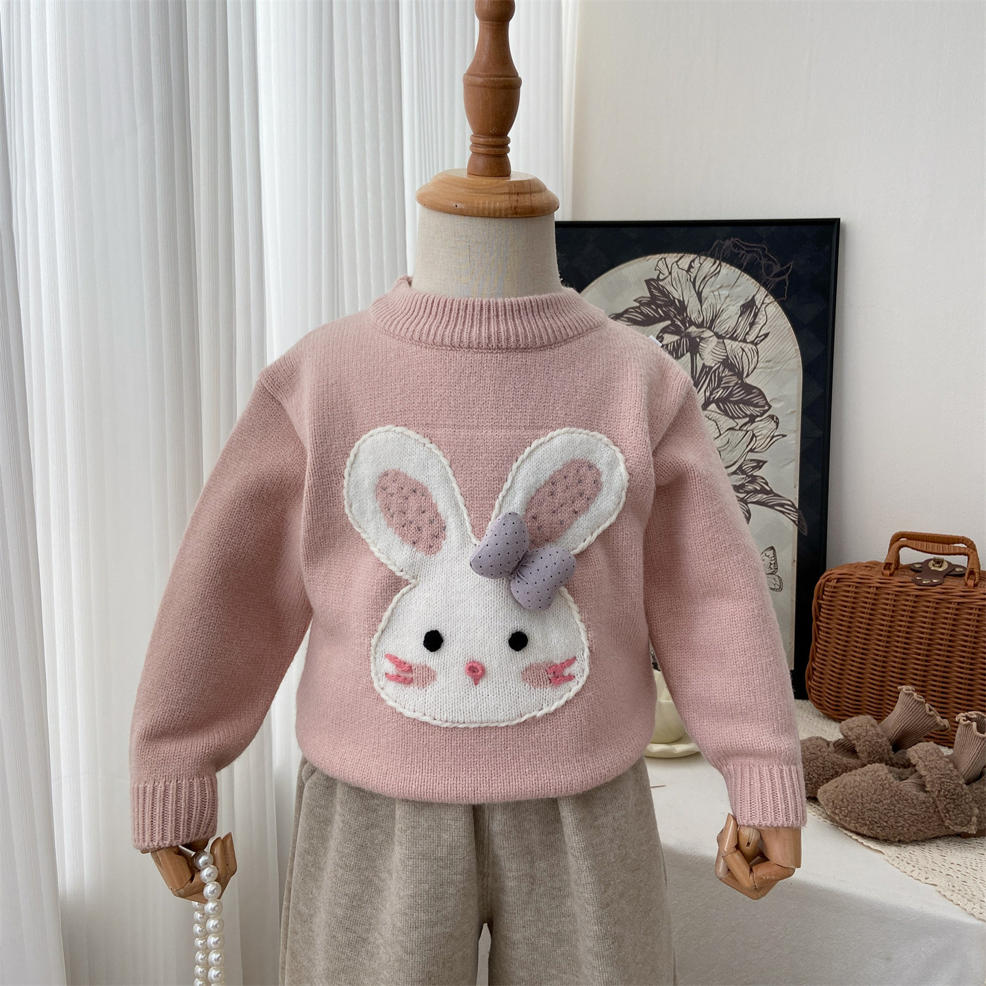 女童毛衣秋冬2025新款宝宝韩版洋气圆领针织衫兔子保暖内搭可外穿