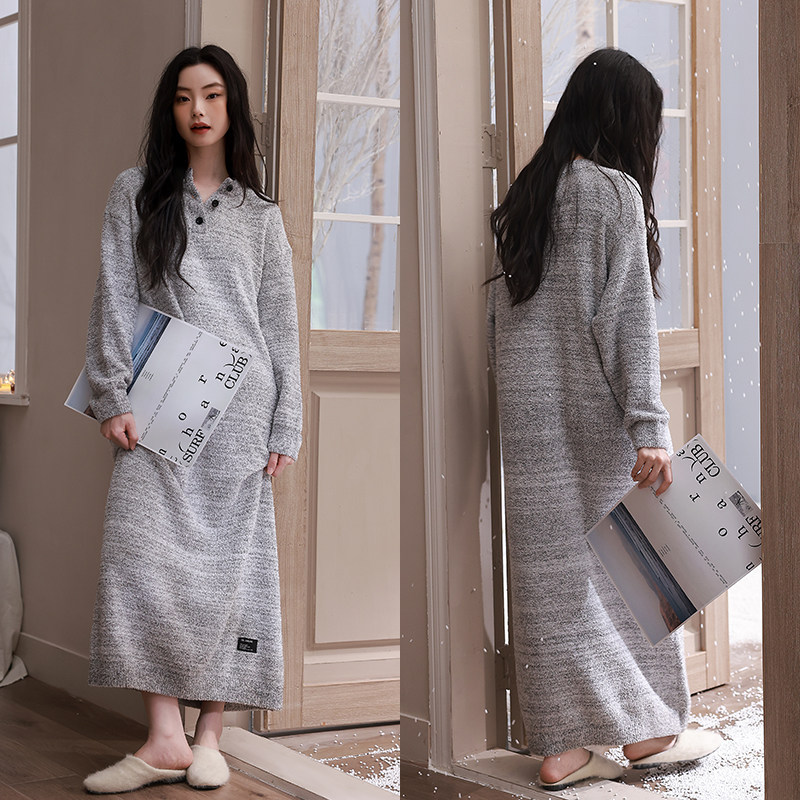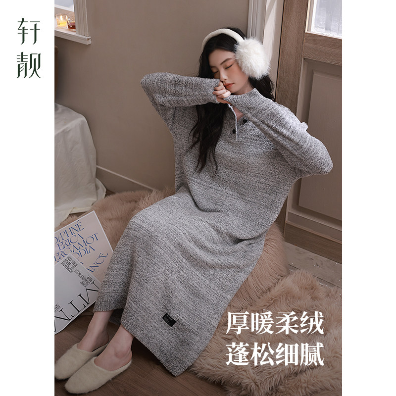 轩靓半边绒睡裙女秋冬加绒加厚保暖珊瑚绒睡衣家居服连衣裙超长款
