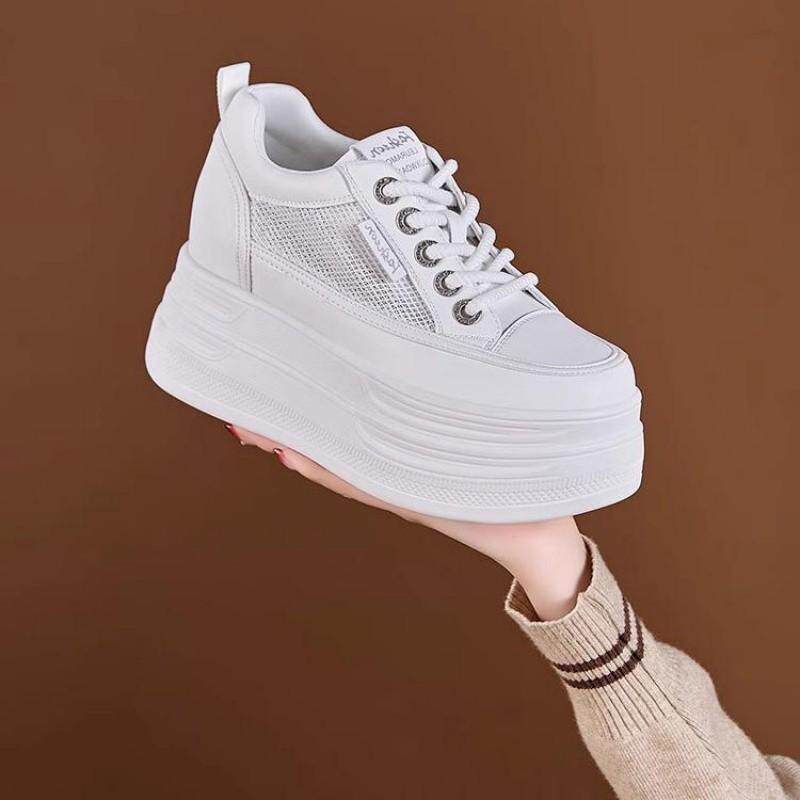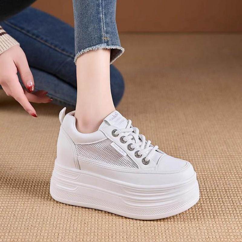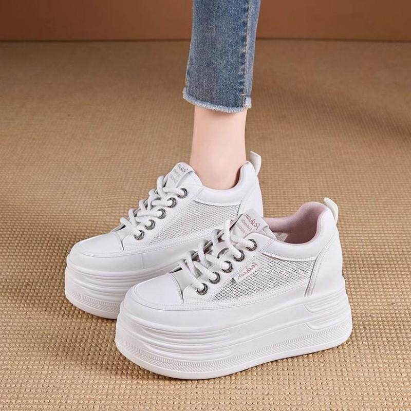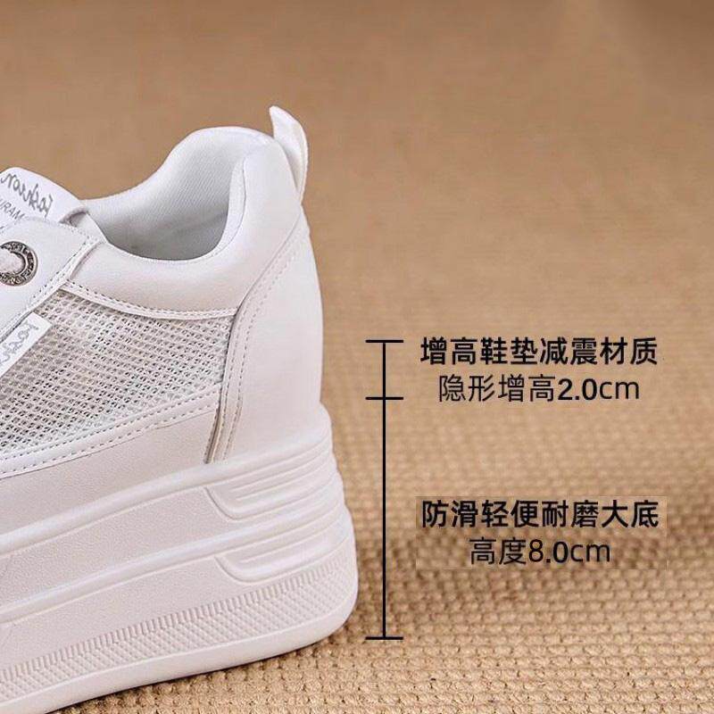内增高小白鞋女10厘米2025新款全牛真皮网面松糕厚底休闲运动春夏