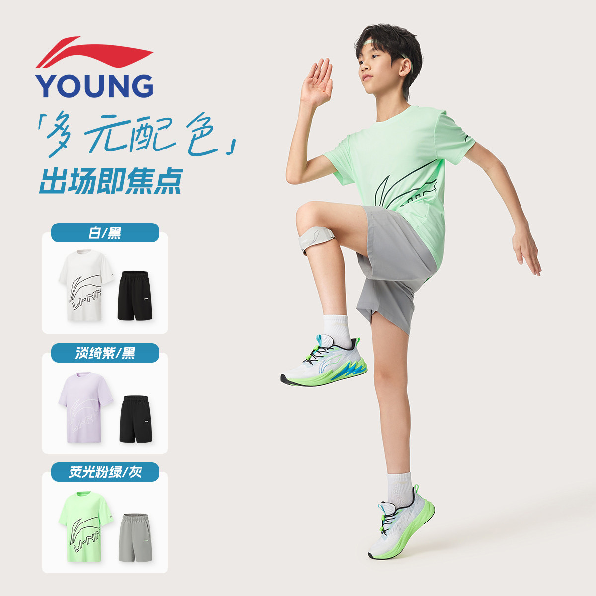 李宁儿童速干运动套装男女童夏季透气短袖短裤两件套装跑步体测服