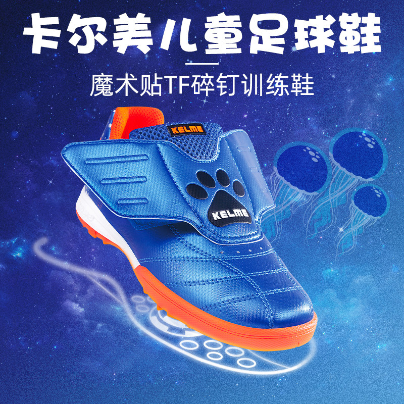 断码特价KELME卡尔美足球鞋飞机魔术贴幼儿tf碎钉小童防滑训练鞋