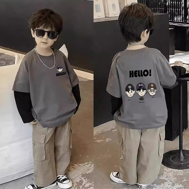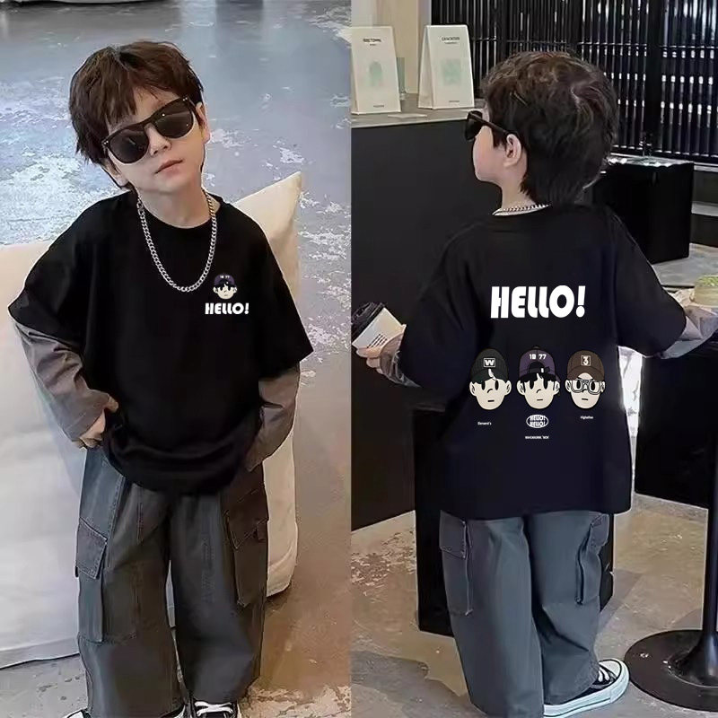 2026新款男童秋季长袖T恤假两件痞帅男孩打底衫圆领长袖t恤中大童