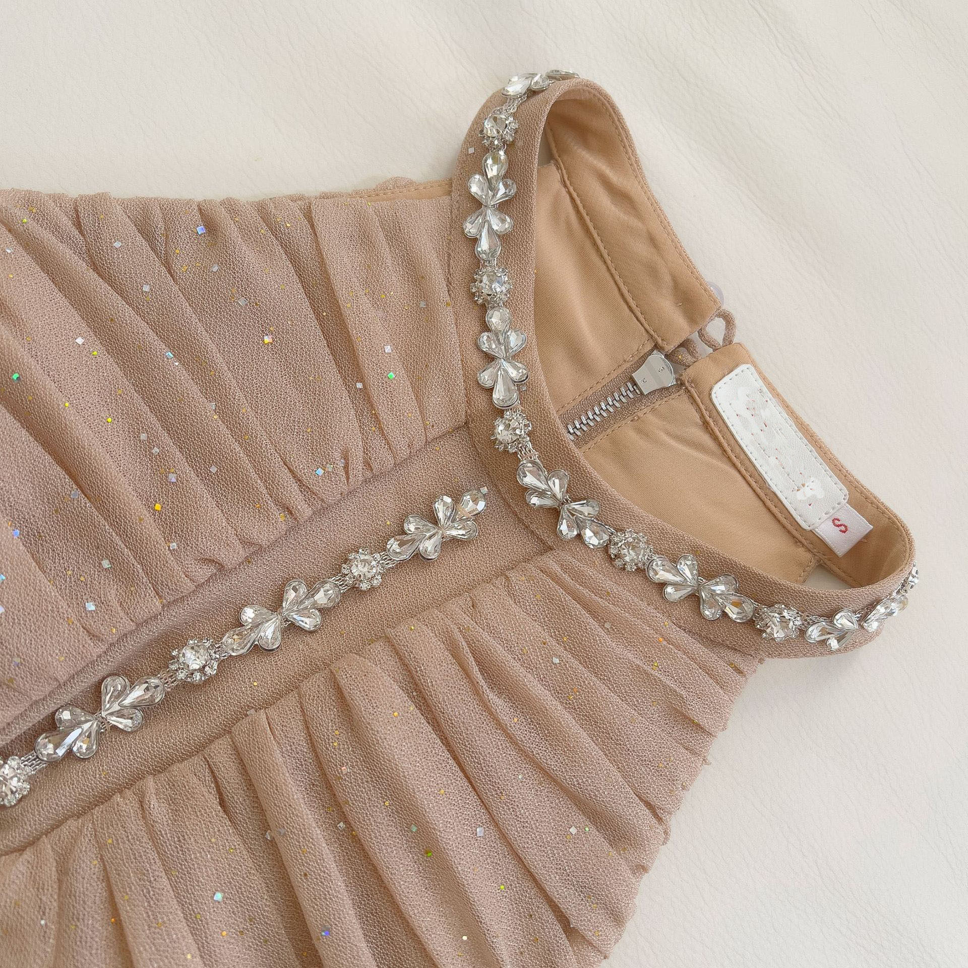 高级感挂脖钉钻连衣裙女短款收腰显瘦名媛宴会气质生日小礼服裙女