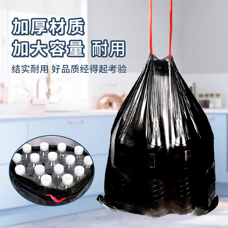 311线报网描述:黑色抽绳式垃圾袋加厚大号家用清洁袋卧室