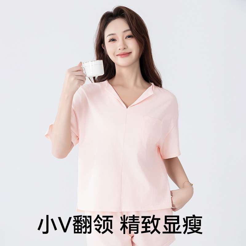 夏季薄款睡衣家居服女款短袖短裤套装纯棉抗菌凉感可外穿t恤上衣