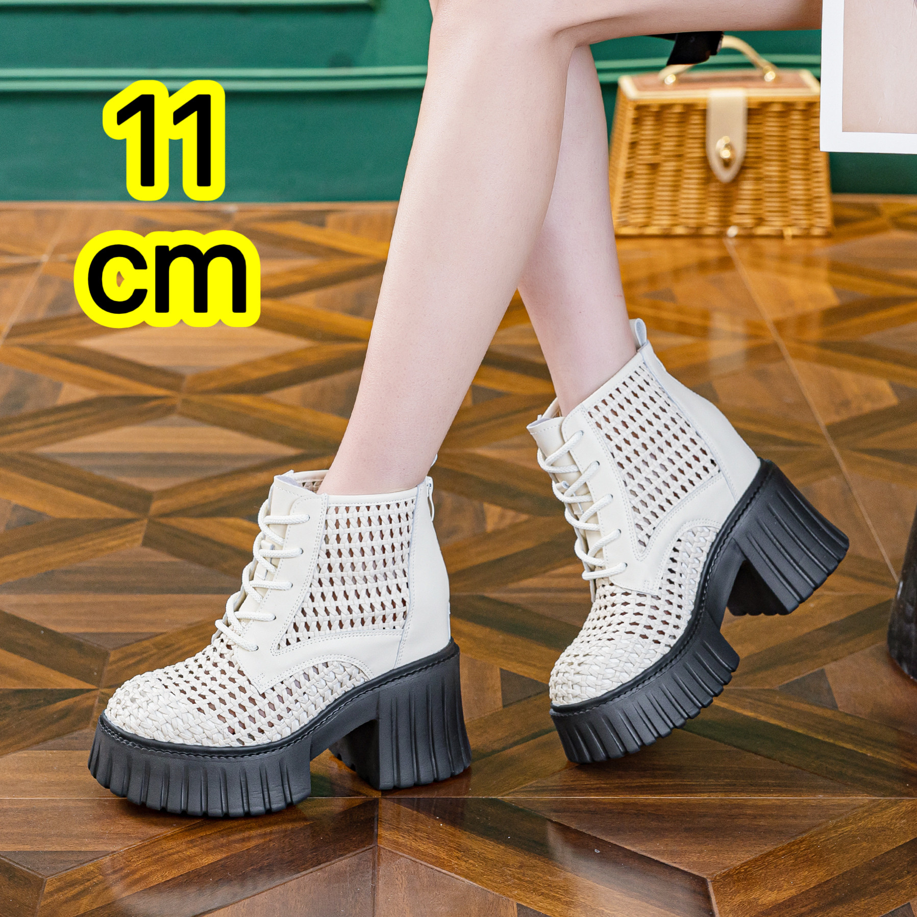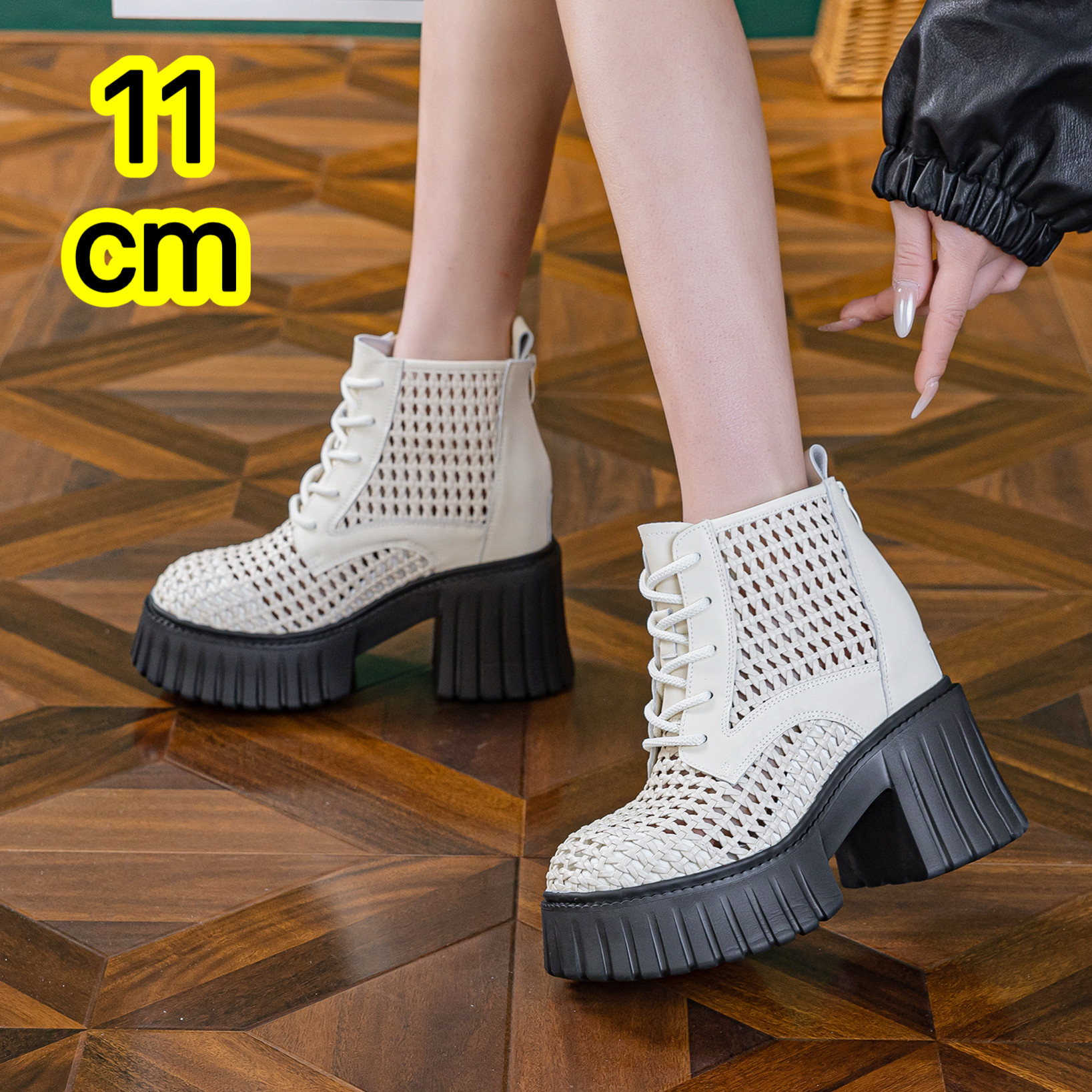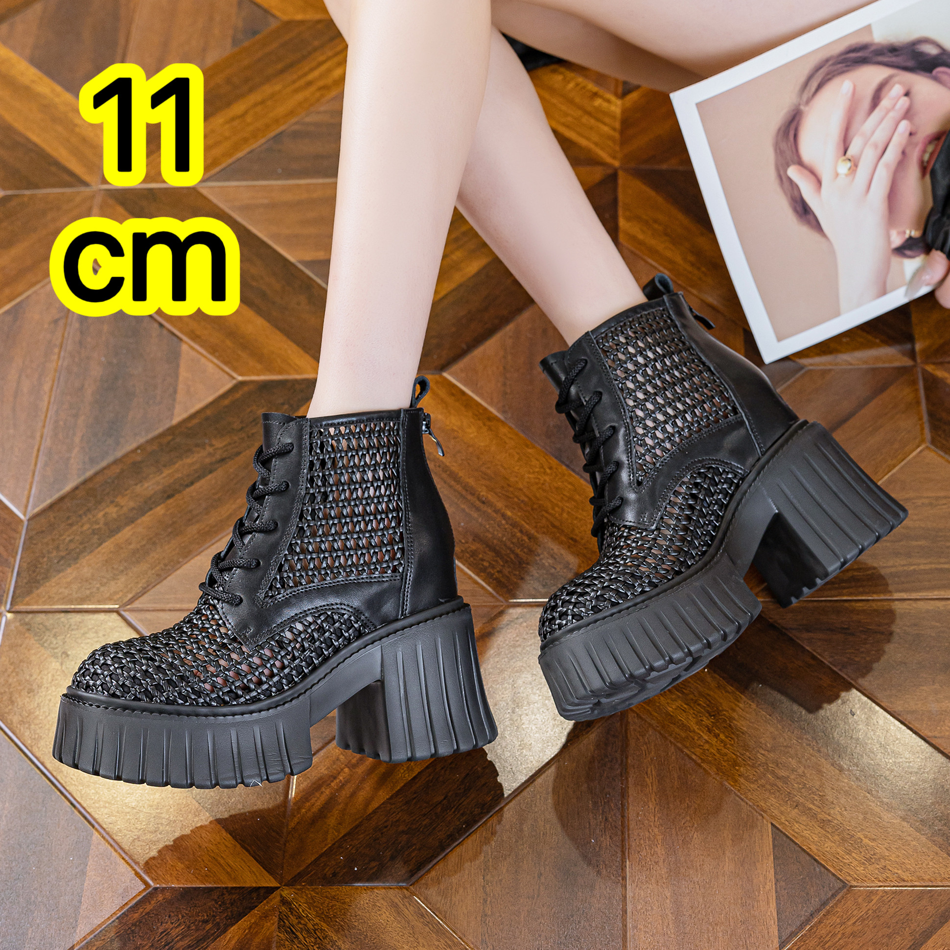 11cm厚底内增高短靴女2026新小个子松糕鞋玛丽珍时装靴网面小皮鞋