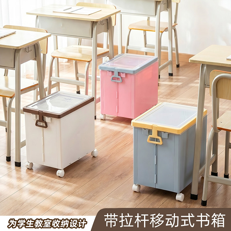 拉杆书本收纳箱带盖滑轮书箱教室用高中生大容量整理神器折叠筐