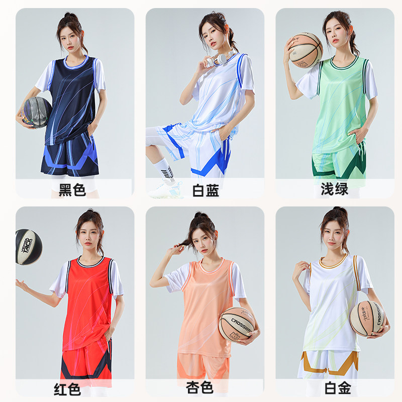女神假两件篮球服套装男女定制大学生高中初中生T恤比赛球衣班服