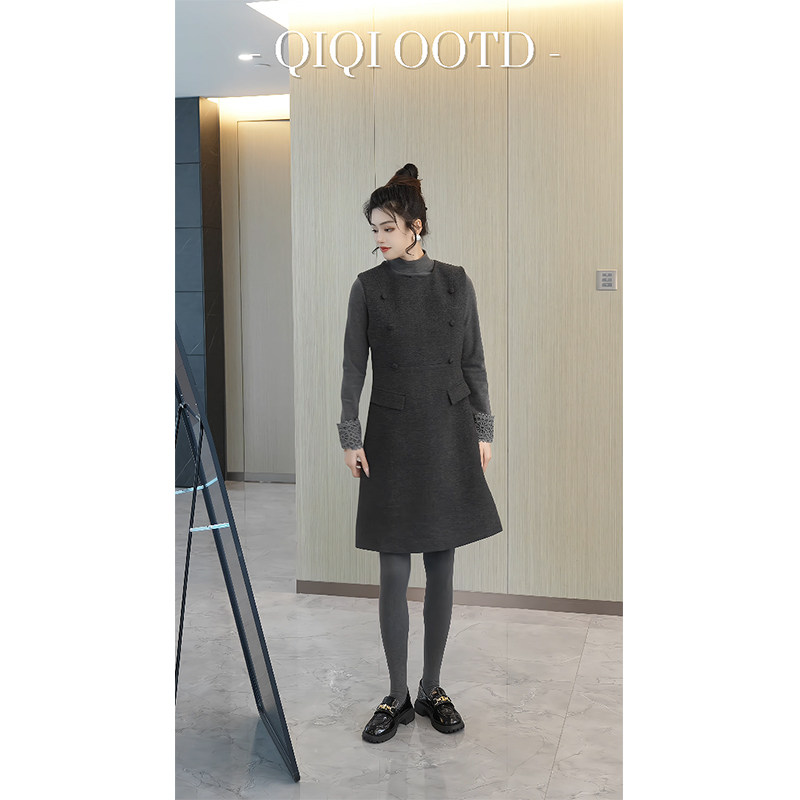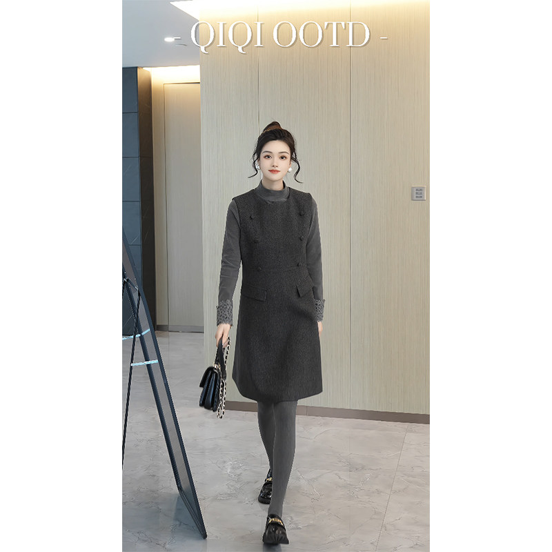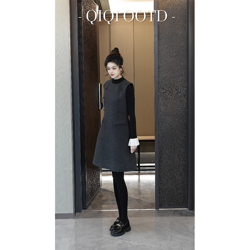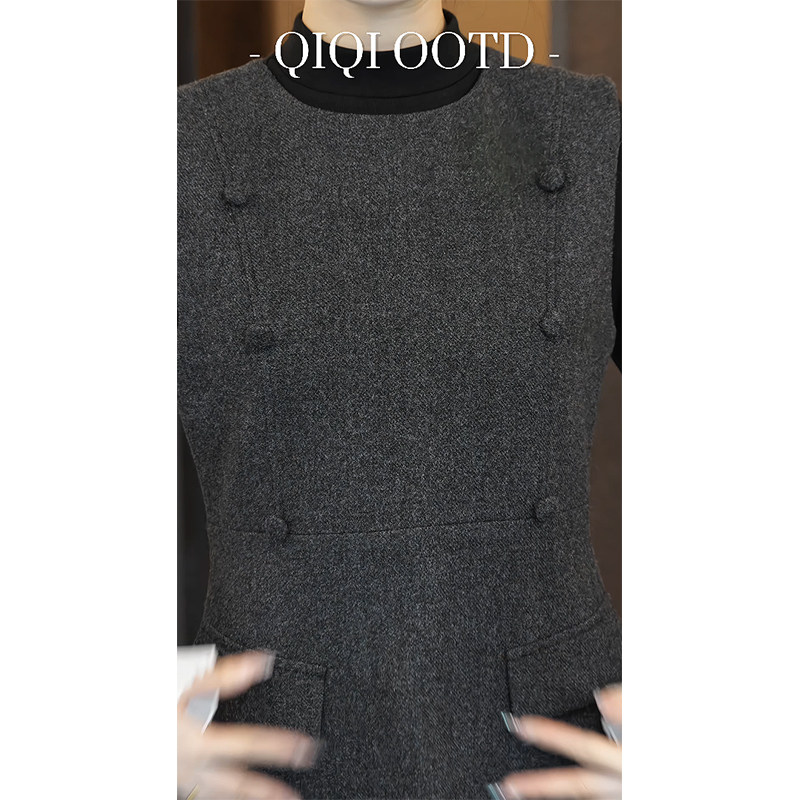 柒院家大码女装设计感圆领背心连衣裙2026春季新款宽松遮肉马甲裙