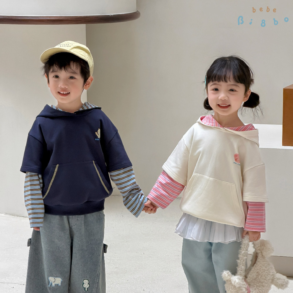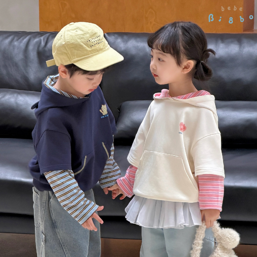 BI8BO童装男童女童春款卫衣假两件休闲服儿童2026年新款大童上衣