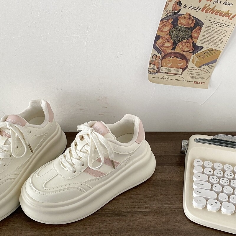 喜叔增高厚底休闲板鞋女款2025新款春夏百搭小白鞋超火爆款面包鞋