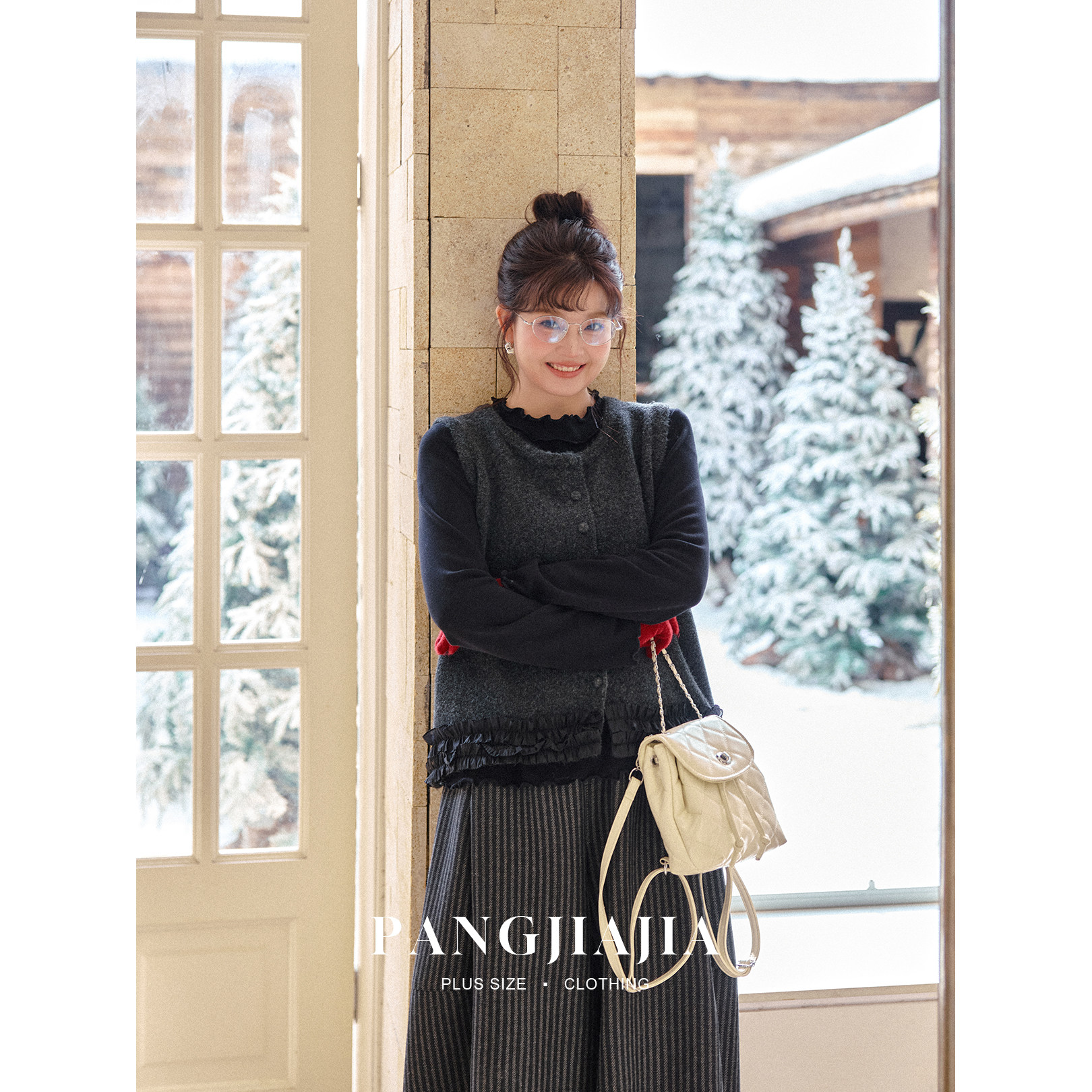 【胖佳佳】胖妹妹mm大码女装花边马甲冬季新款加厚针织开衫外套