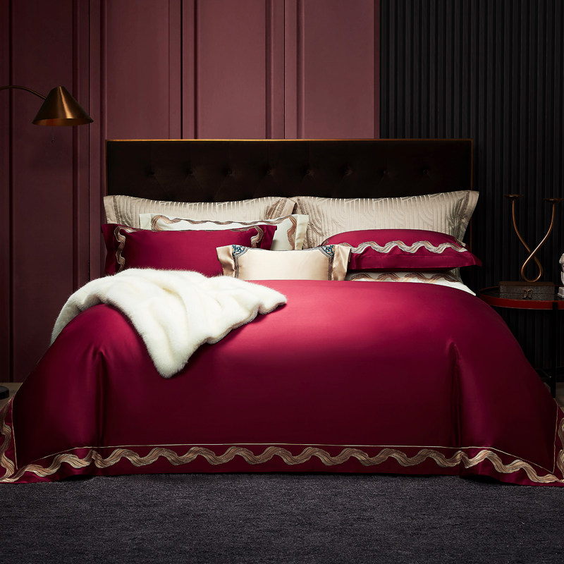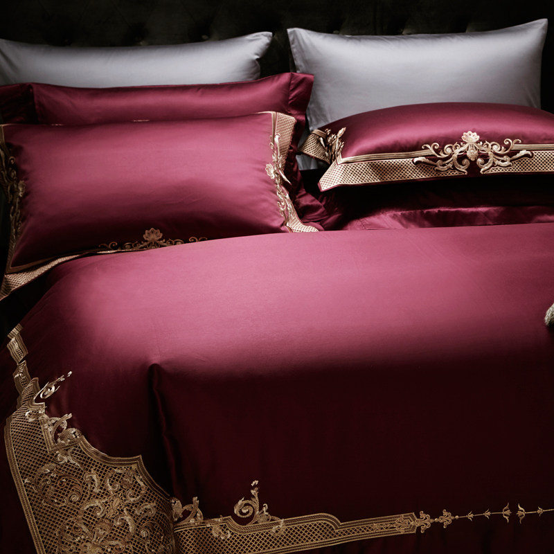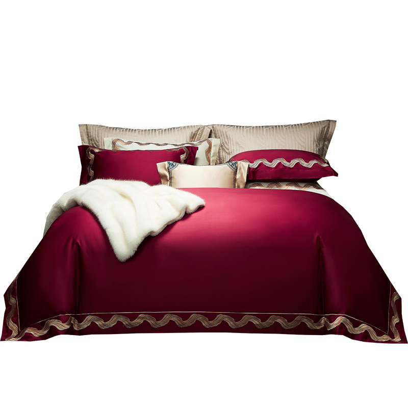 酒红色婚庆四件套纯棉床单被套结婚140支全棉新疆棉1.8米床上用品