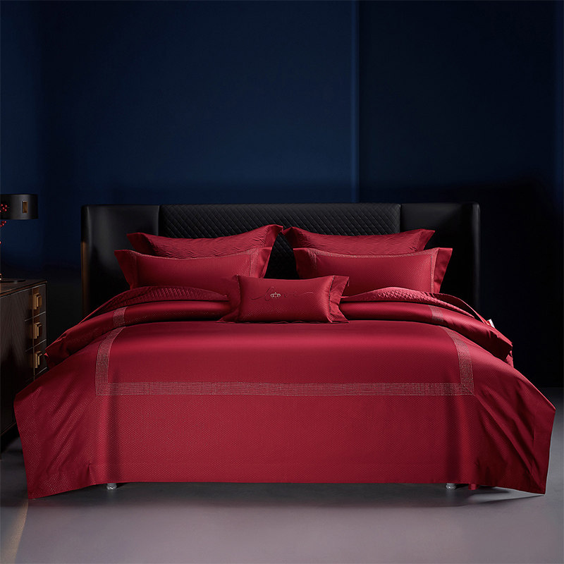 长绒棉高档婚庆四件套全棉别墅结婚纯棉喜庆床上用品67件套酒红色