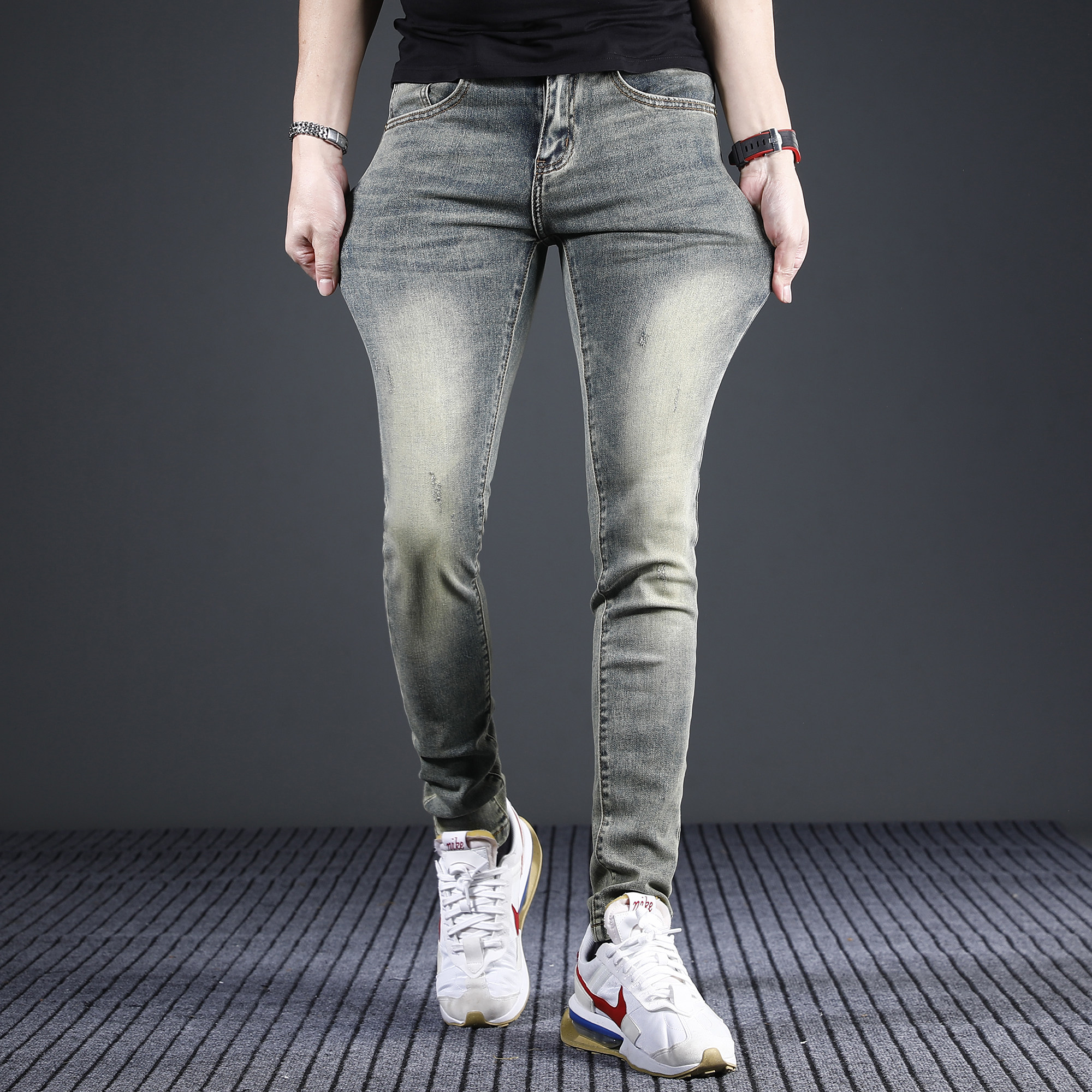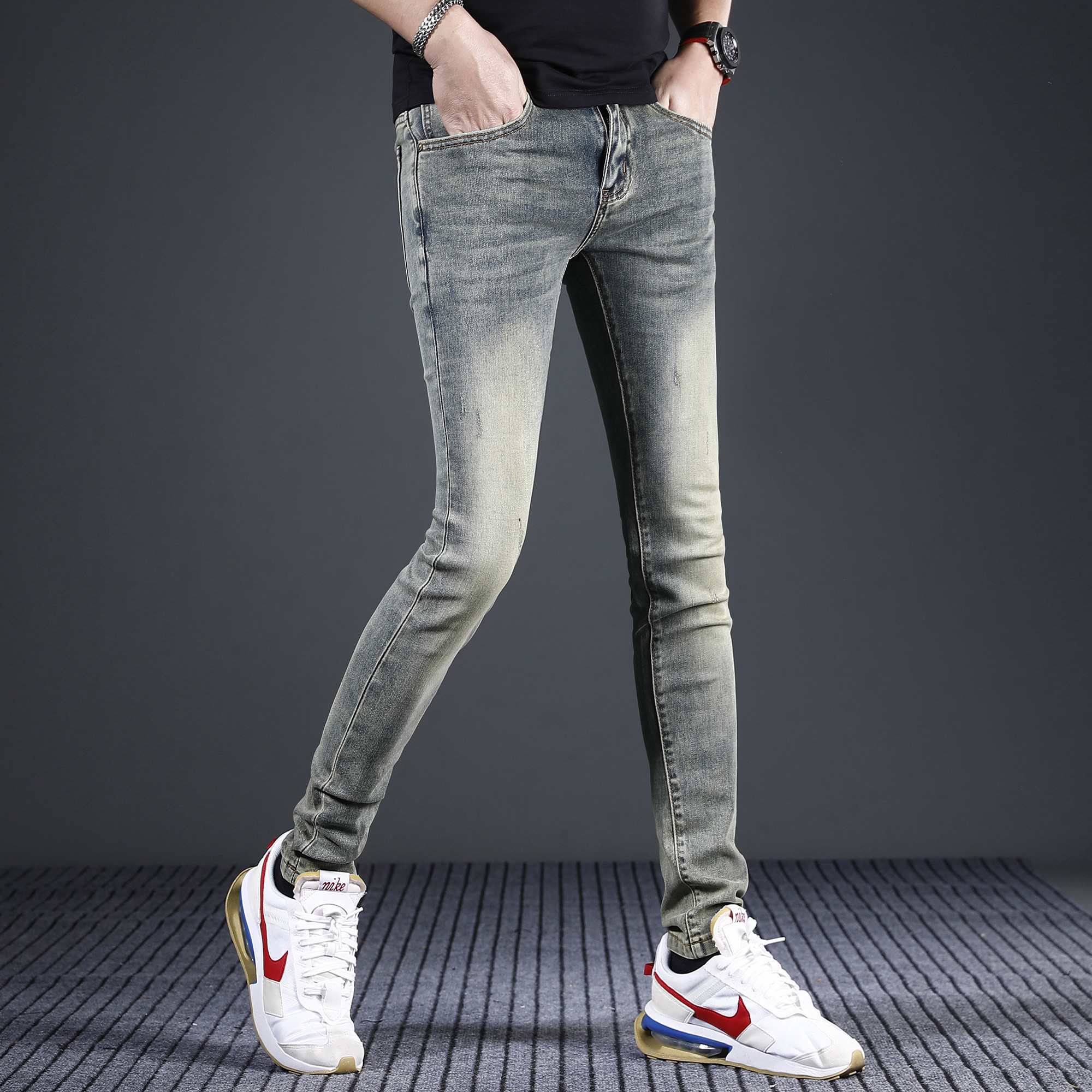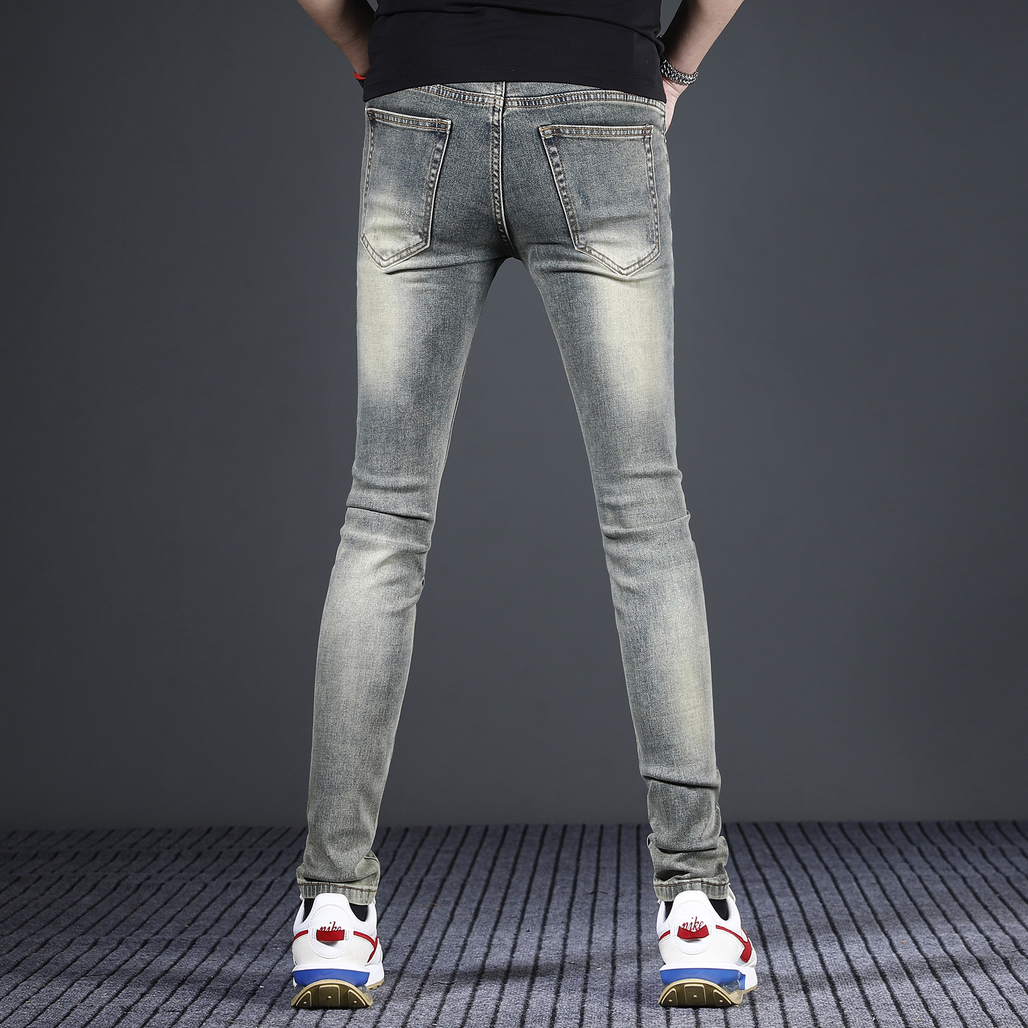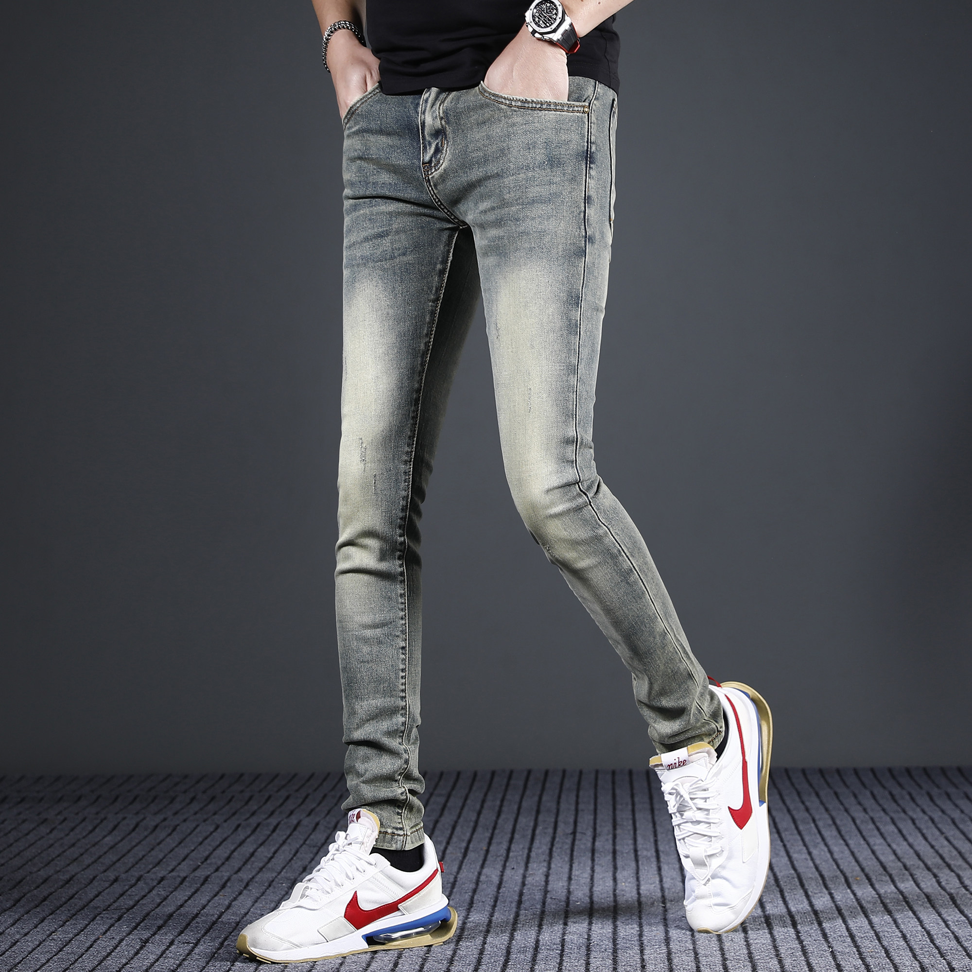 香港高端复古牛仔裤男款修身小脚2026新款夏季薄弹力男士裤子潮牌