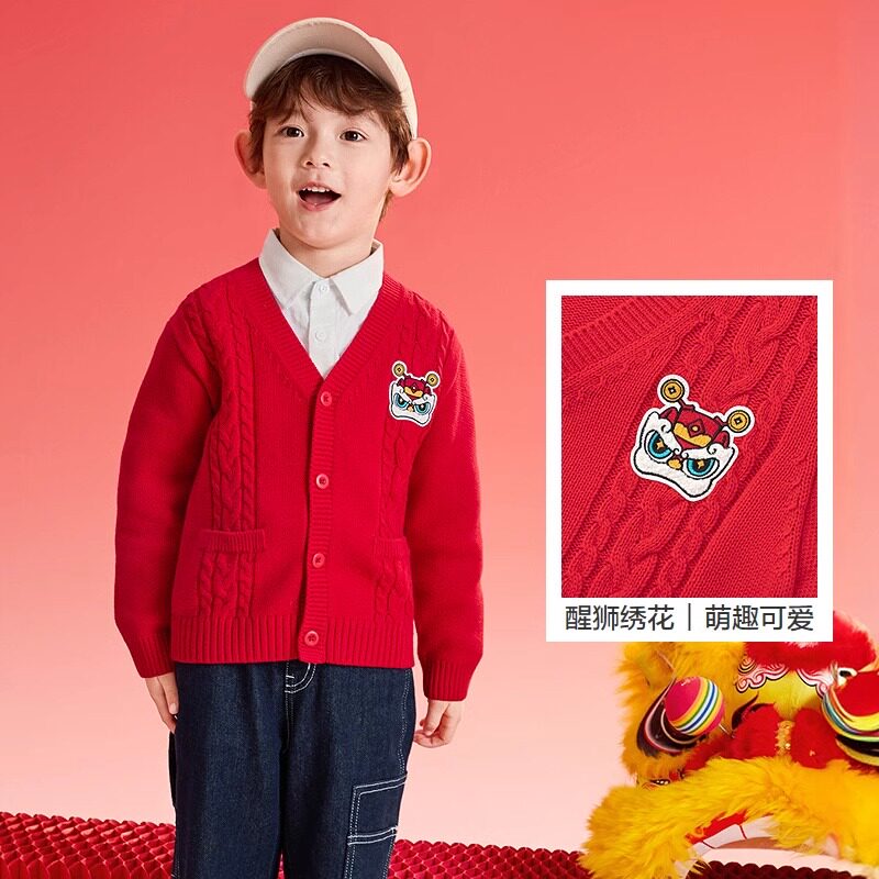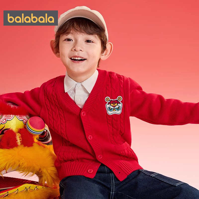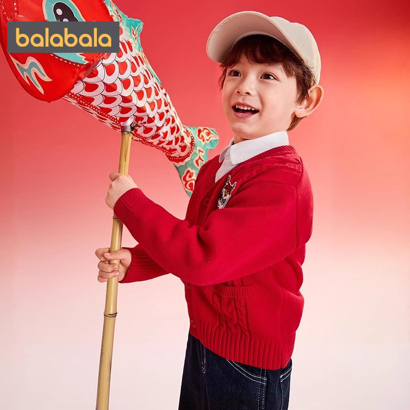 巴拉巴拉男童毛衣外套儿童红色开衫春秋款童装小童宝宝洋气针织衫