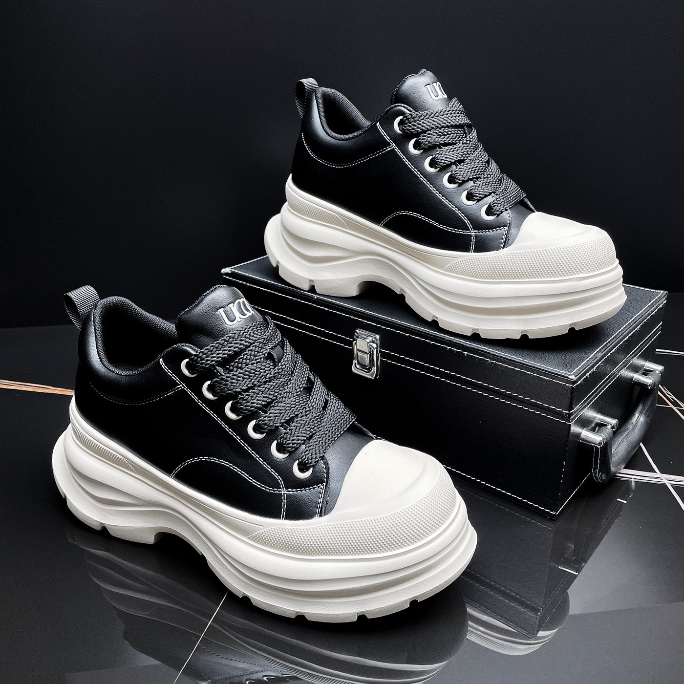 厚底小白鞋男款2026春季新款8CM内增高男鞋大头德比鞋百搭休闲鞋