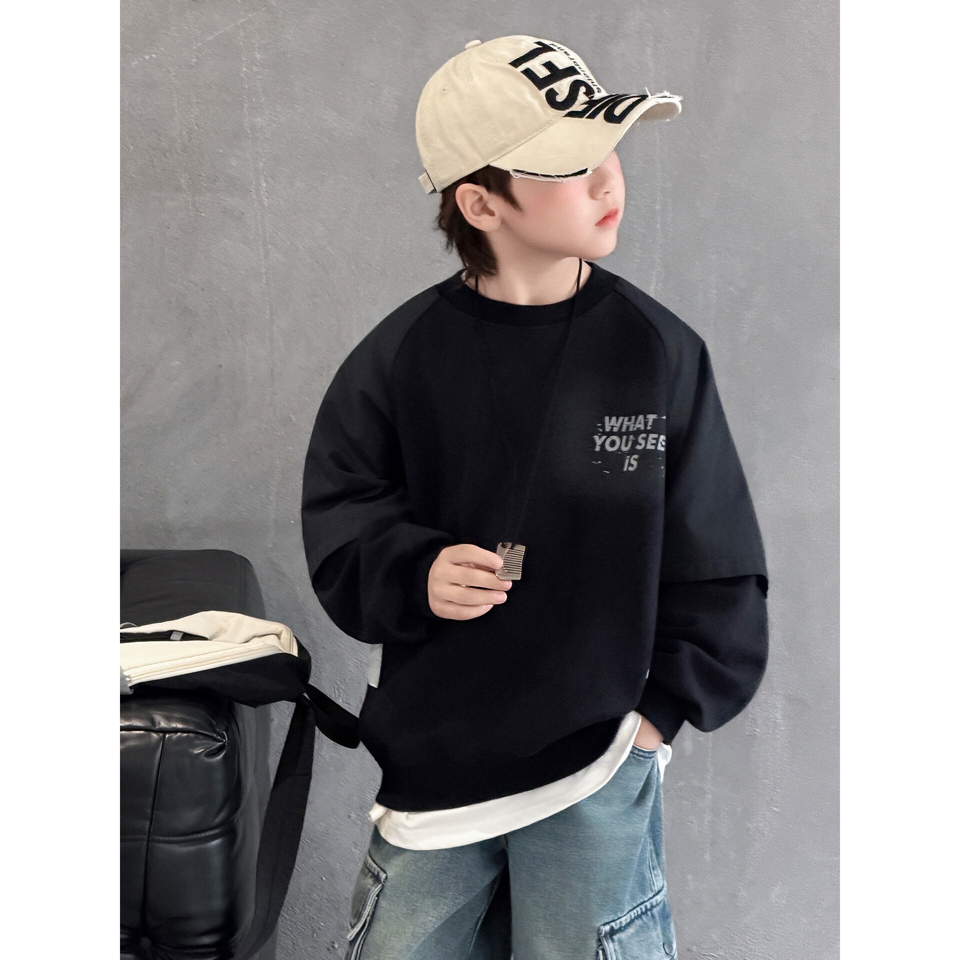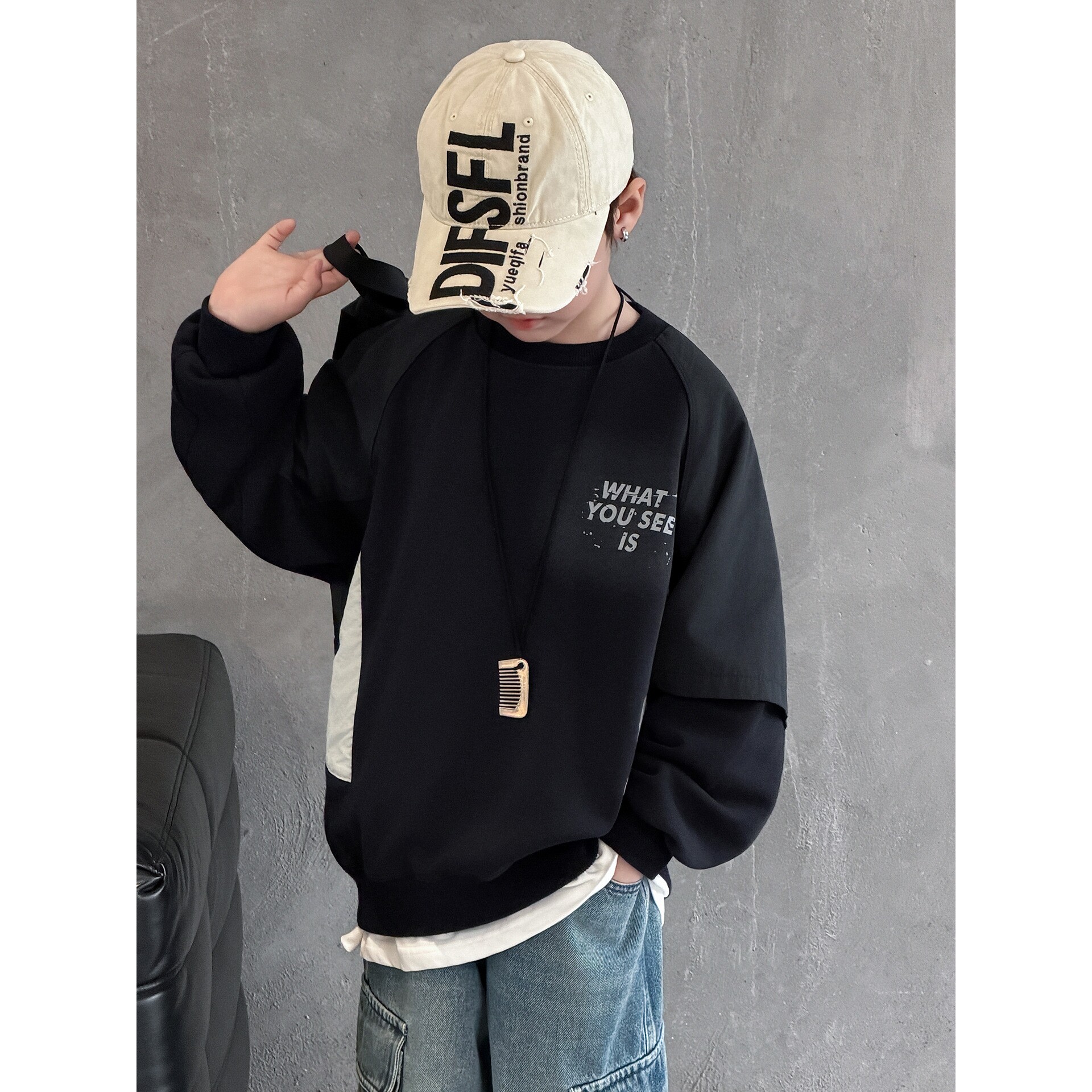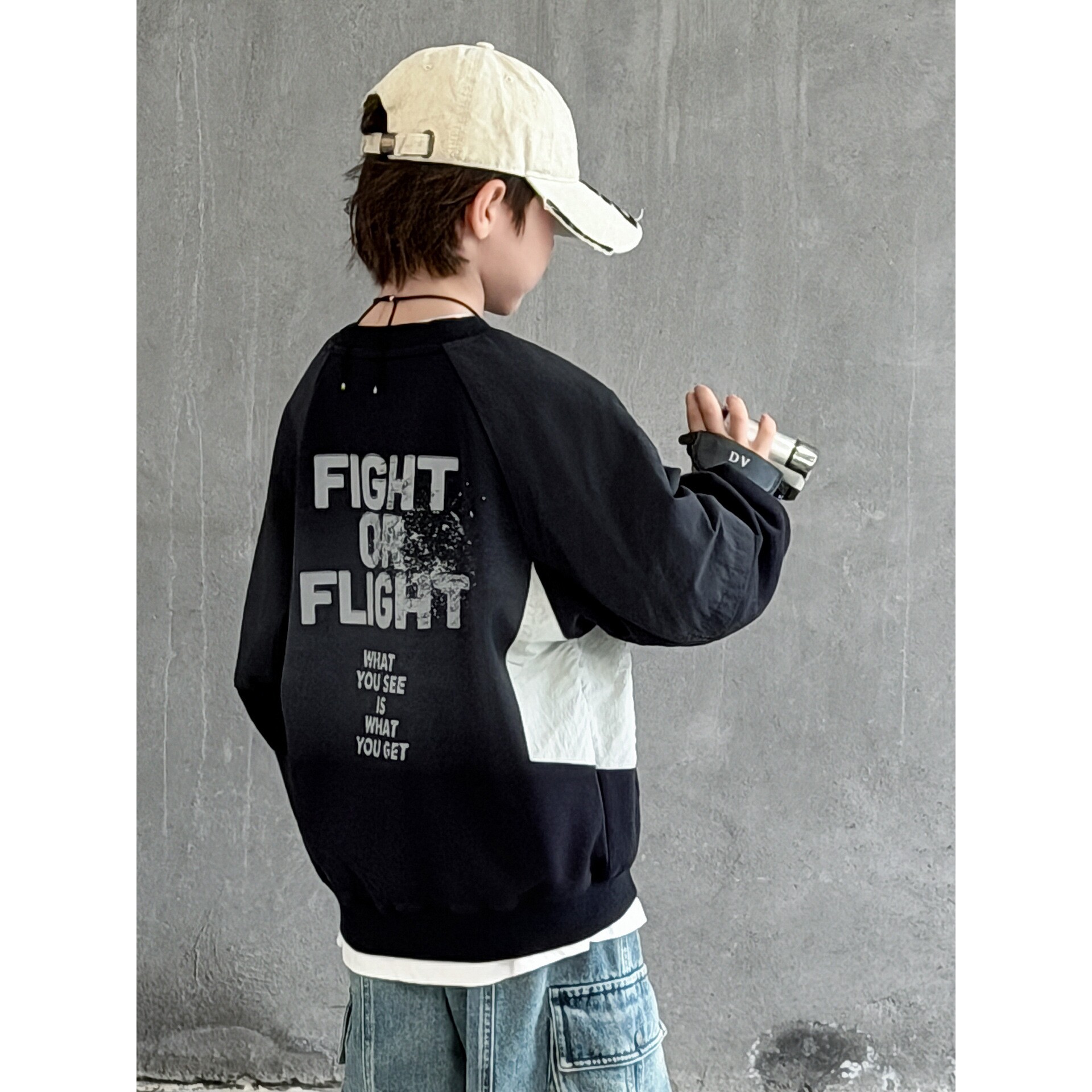 男童卫衣春秋款2026新款中大童春装男孩春季儿童拼接痞帅上衣潮酷