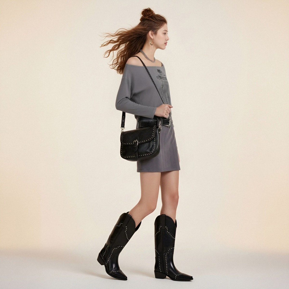 西町村屋设计感辣妹连衣裙女春季新款复古长袖修身裙子XAAA10556
